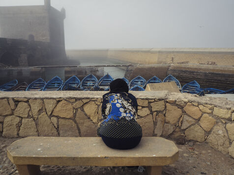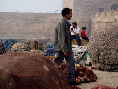Ville portuaire du Maroc, au bord de l'atlantique, Essaouira charme par son port , ses plages immenses, et son dédale de ruelles à l'architecture ancienne qui attire les touristes ...Mais, au delà des portes du souk et des négociations marchandes, l'âme de ses habitants happés par la pauvreté, semble indifférente à tous ses visiteurs. Leurs pas, pressés dans la médina , lassifs sur les bords de mers, esquivent les regards.