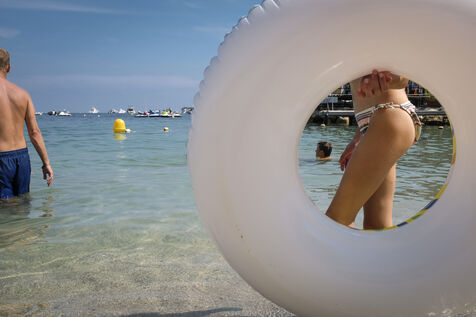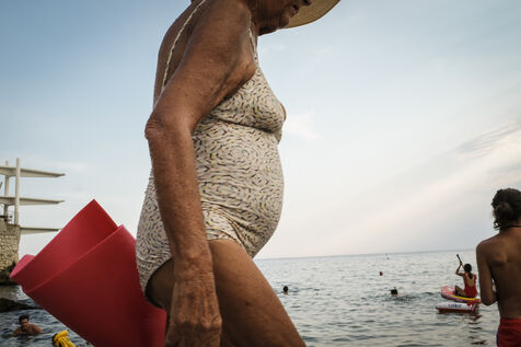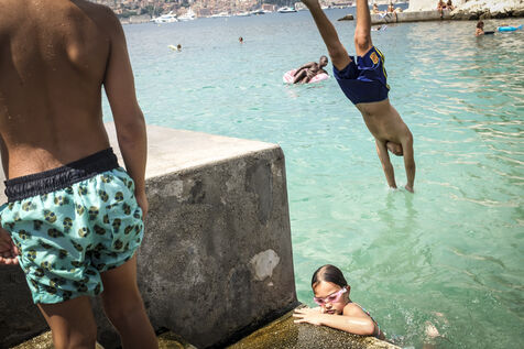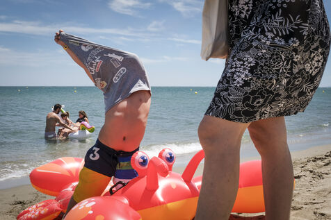 Even if invisible borders separate the aligned deckchairs from the private beaches, from the disorderly and colourful territory of the public beaches, children and adults indulge in the same joys, the same excesses.