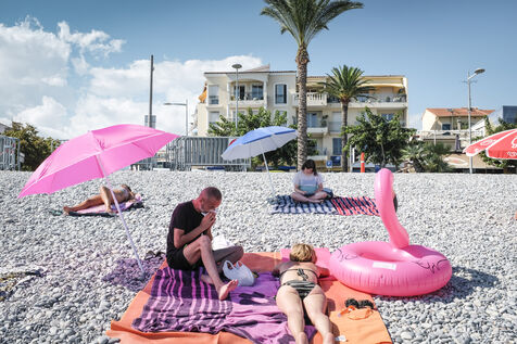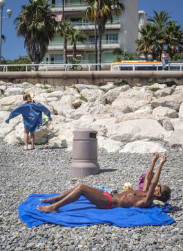 De Beaulieu sur mer à Cannes la Croisette, noms porteurs d'un imaginaire collectif évoquant tout aussi bien la jet set que le tourisme de masse, se croisent et se mêlent toutes les couches de la société. Ici, durant les mois d'Aout et de juillet, tous se partagent quelques centimétres carré de sable ou de galets.