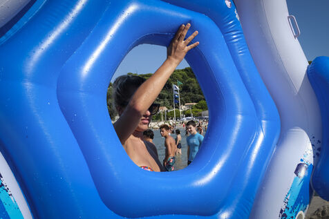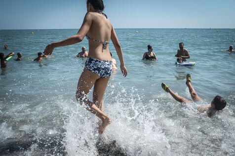 Même si des frontières invisibles séparent les transats alignés des plages privées, du territoire désordonné et coloré des plages publiques, enfants et adultes se livrent aux mêmes joies, aux mêmes excés.