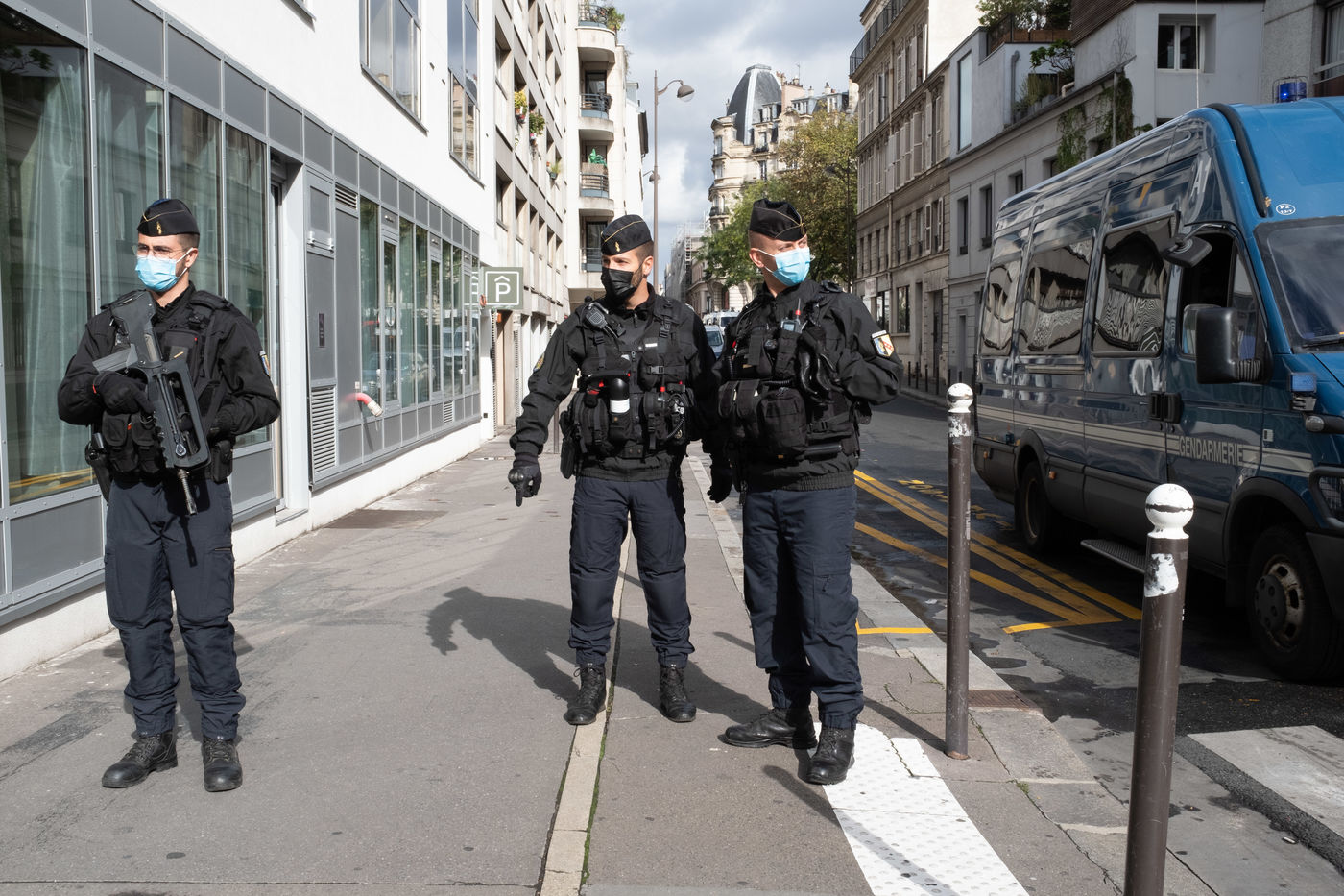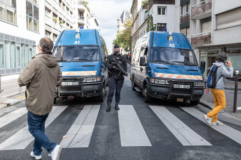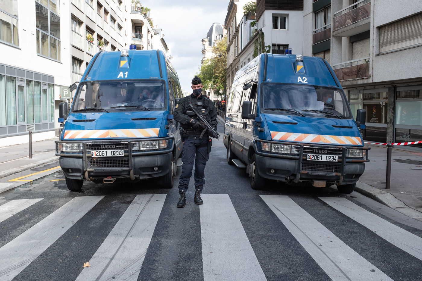 Une attaque à la hachette a eu lieu devant les anciens locaux de Charlie Hebdo. La Police bloque tout le perimetre autour de la rue Nicolas Appert et du bd Richard Lenoir. On déplore 2 blessés grave - Paris 11eme - 25 septembre 2020.