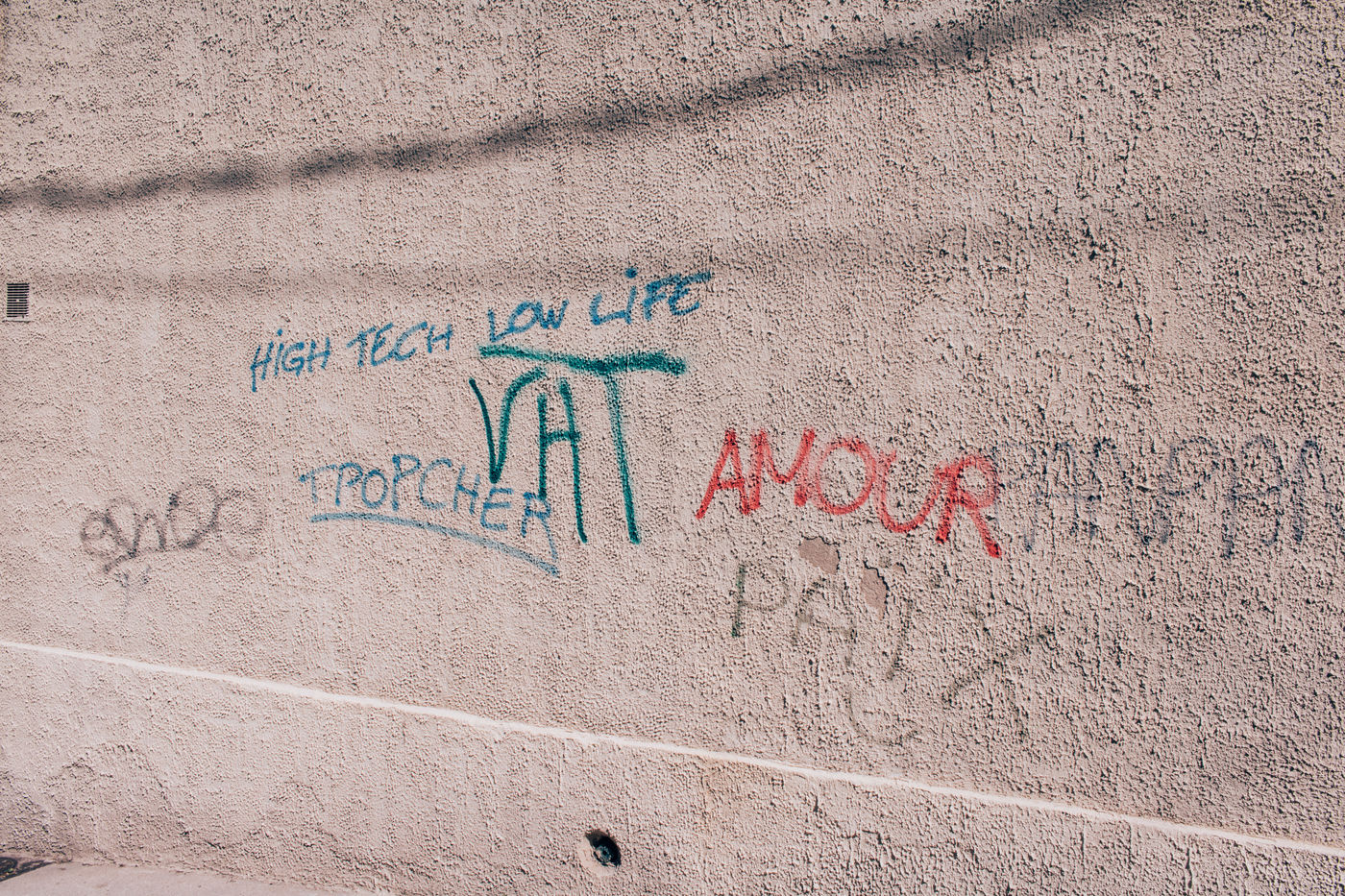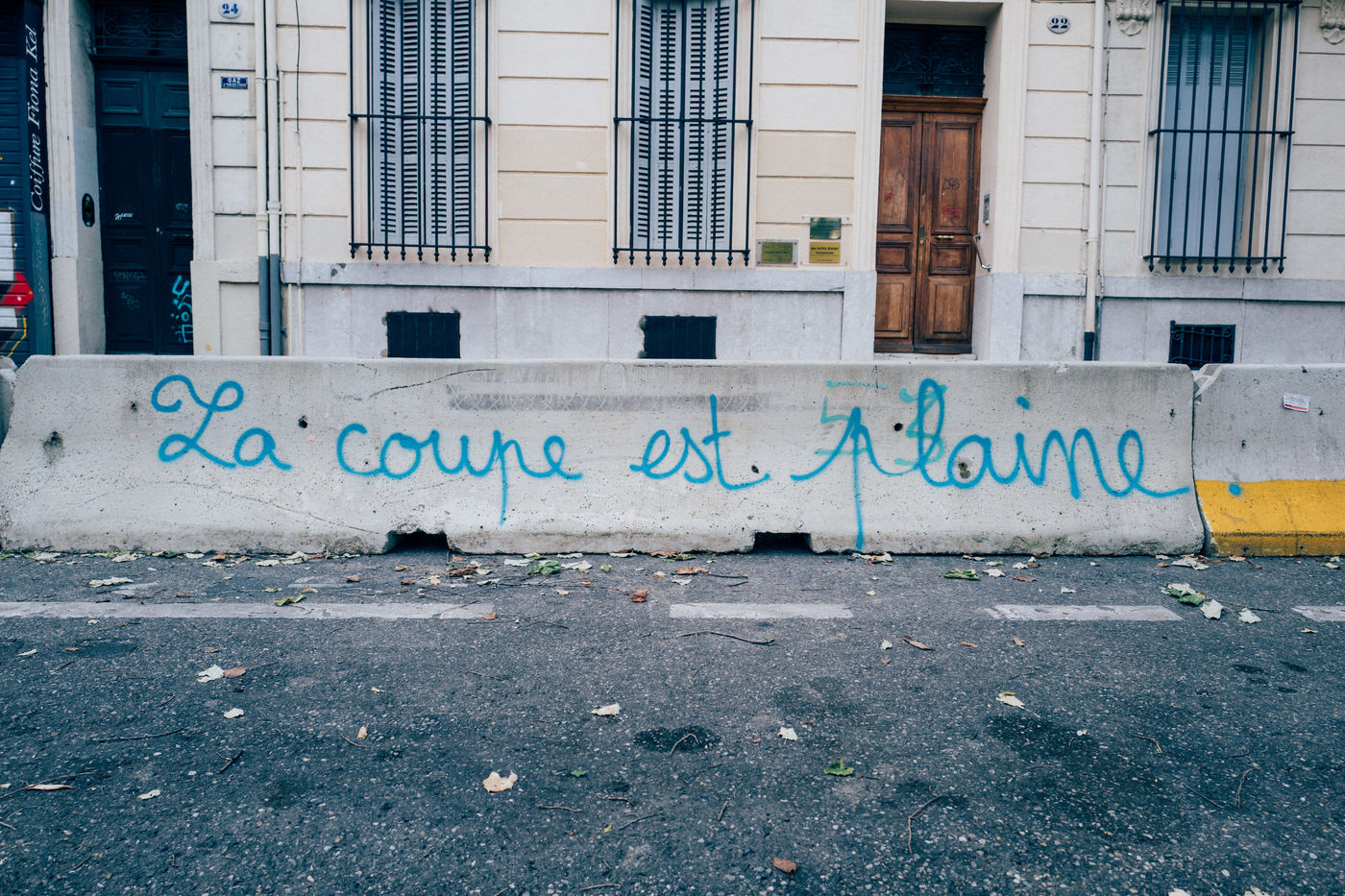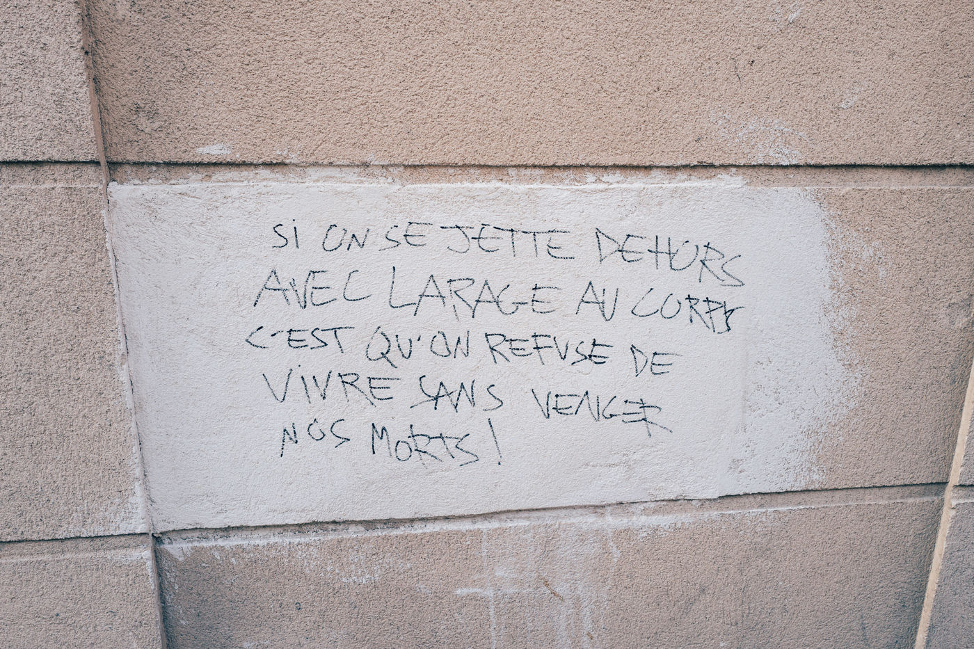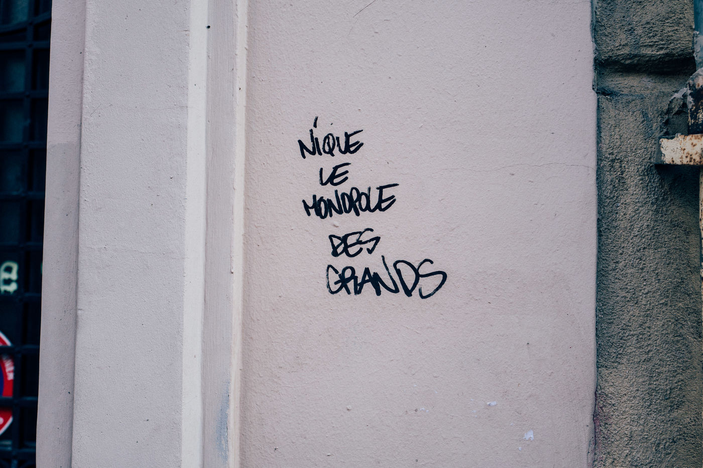 1 year to compile the graffiti, tags, street messages encountered during the year 2018 in Marseille during demonstrations, popular protests or street photography sessions. Non-exhaustive anthology of the beatings of the walls of a city.