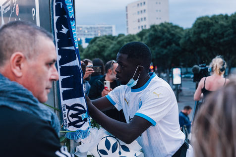 Tribute to Bernard Tapie at the Velodrome stadium, former president of Olympique de Marseille, who died on October 3, 2021.