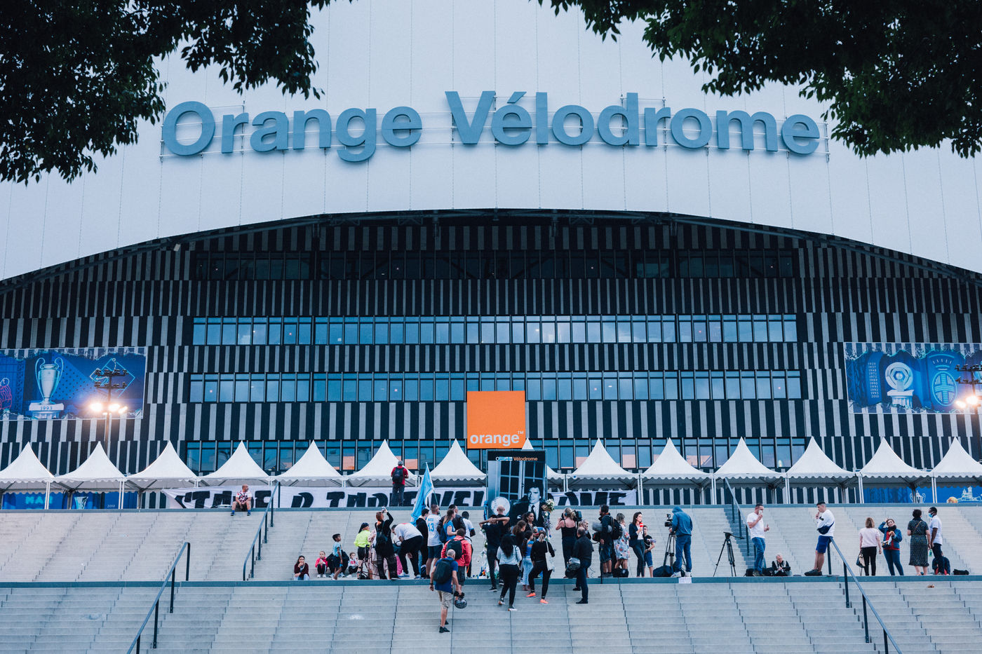 Hommage au stade Vélodrome à Bernard Tapie, ancien président de l'Olympique de Marseille, décédé le 3 octobre 2021.