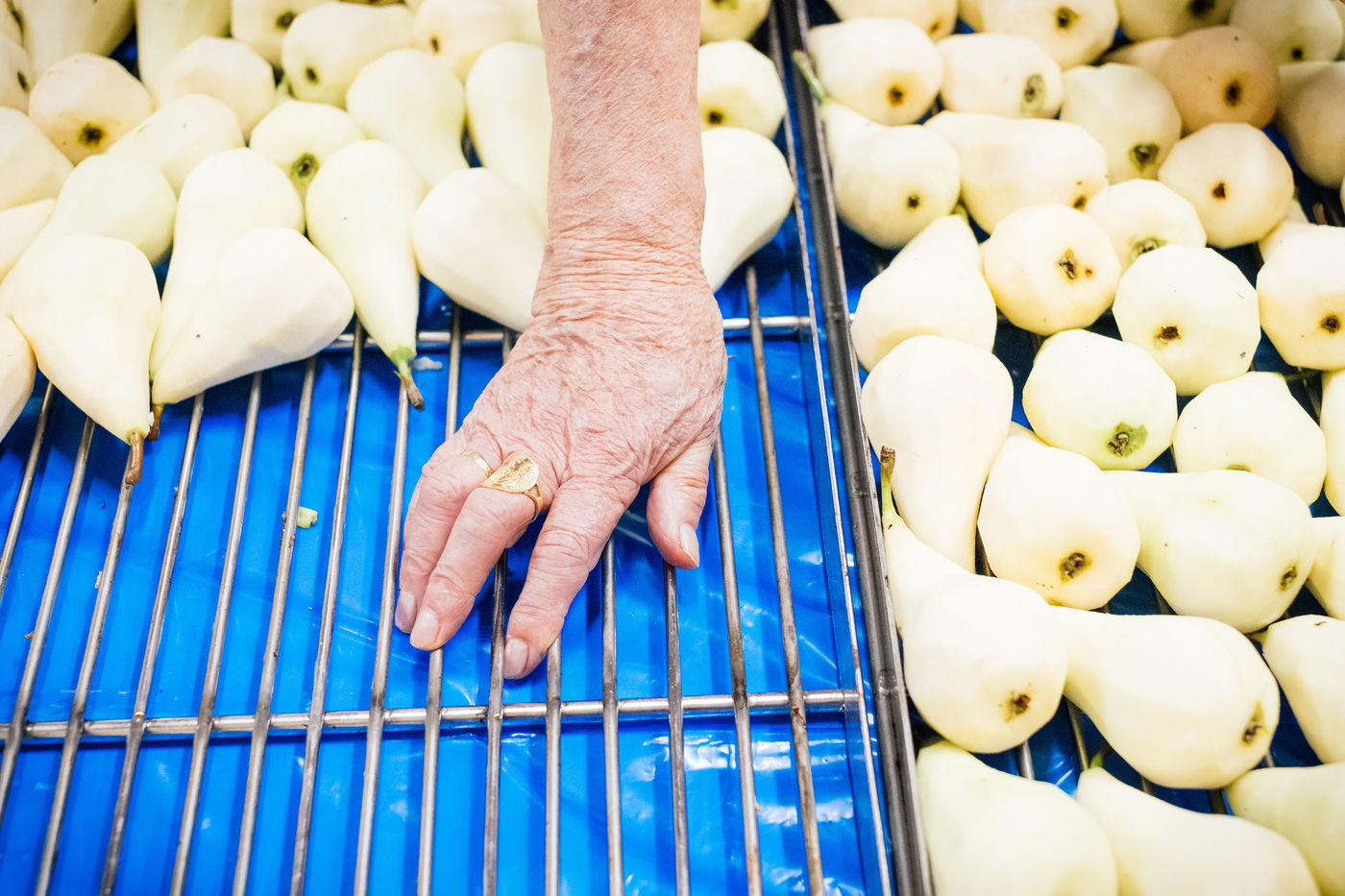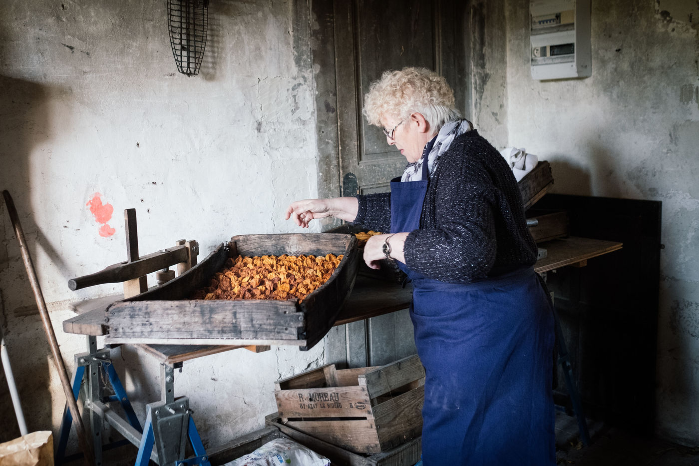 Since the 1990's, an association and producers have been trying to revive this know-how. Christine and Philippe Blot, Tourangeaux by adoption, have restarted the production in the wood oven of their renovated farm to market these treasures through their company Reines de Touraine. The production process lasts one week. Once peeled, the pears are put in the oven several times before being subjected to the wrath of the platissoire, a kind of press that extracts the last traces of moisture. Thus dehydrated, the pears can be kept for decades.