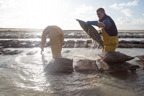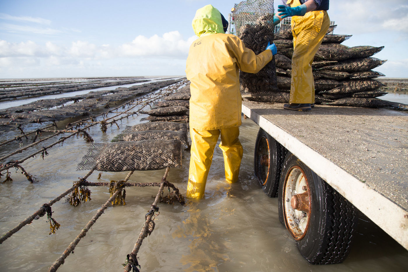 Dans ce 1er épisode, les saisonniers ne sont pas encore arrivés, mais les ouvriers continuent leur travail quotidien et vont chercher des poches d'huîtres à marée basse.