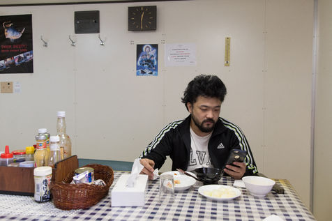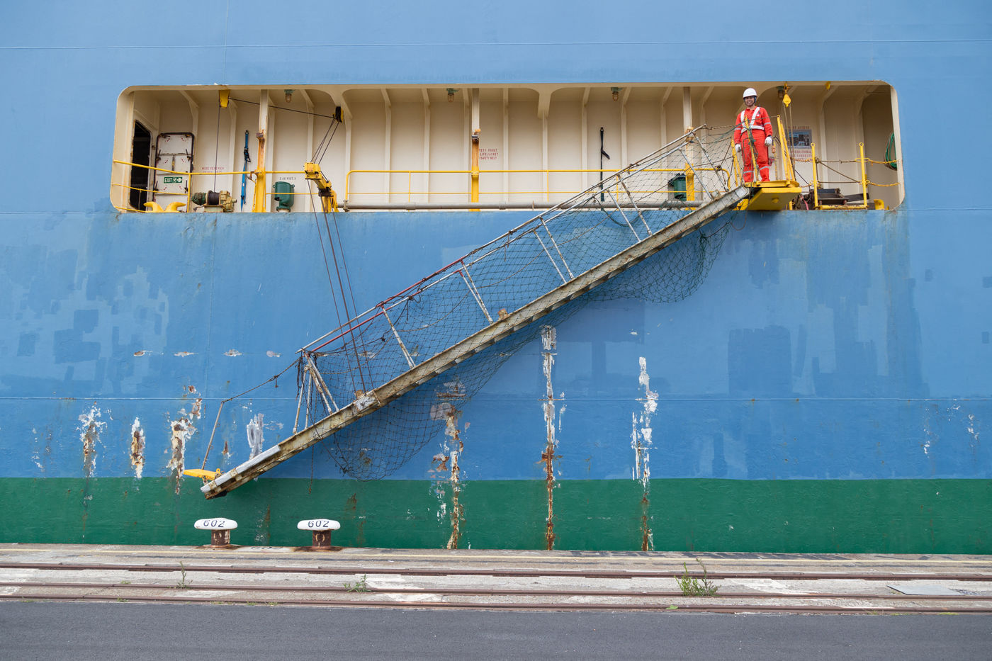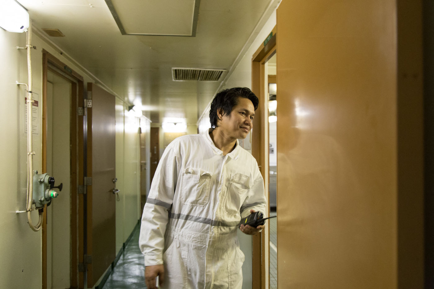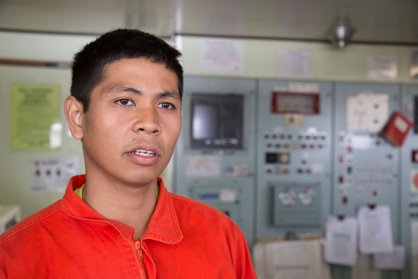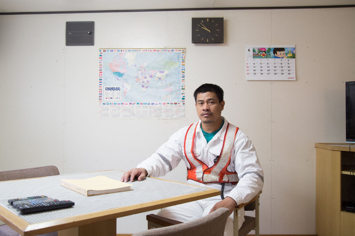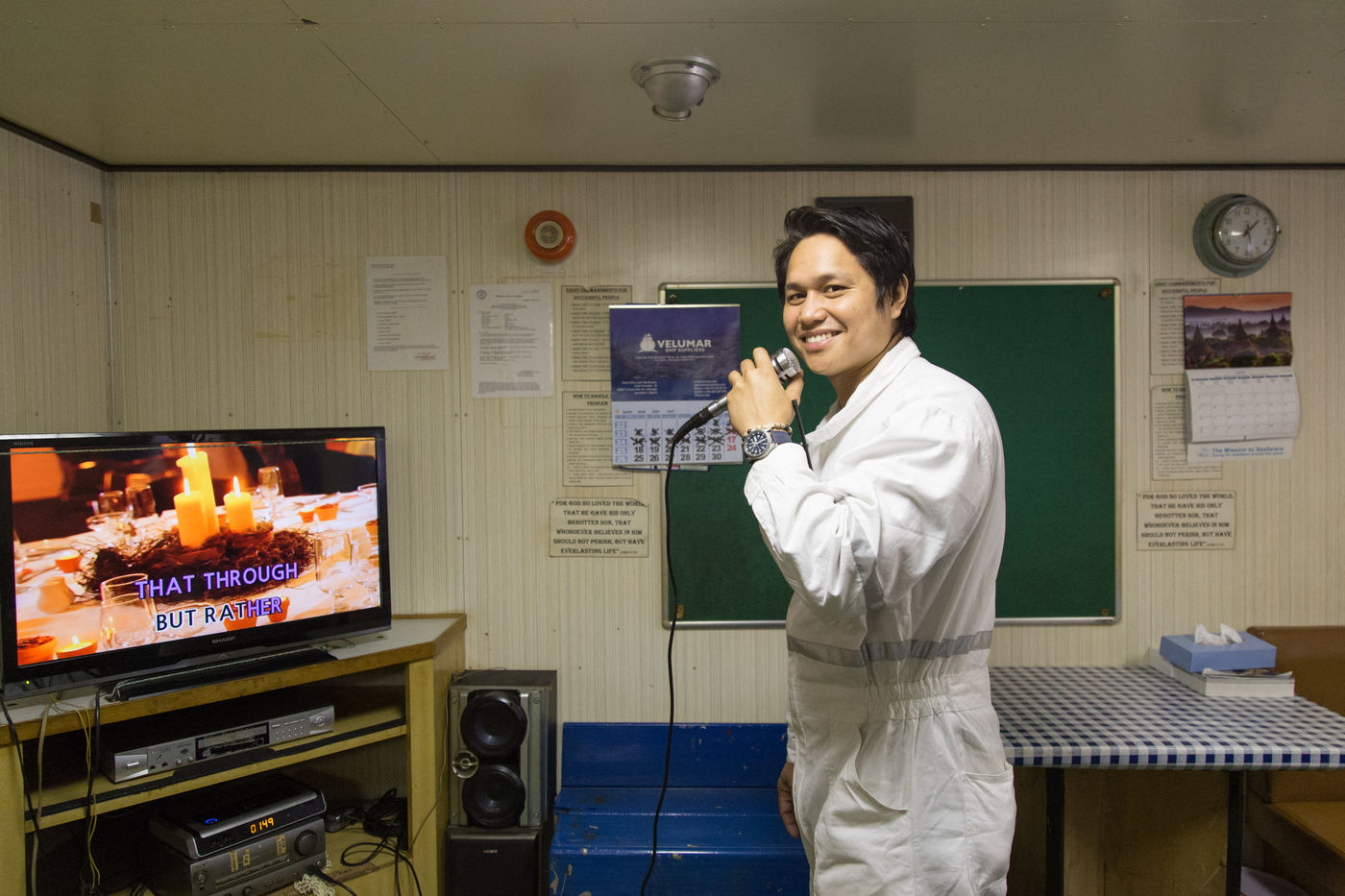 The stopover (of 10 hours) is too short to leave the ship but the high-speed internet connexion that is available on ships on the outskirts of coasts allows the seamen to get closer to their family.