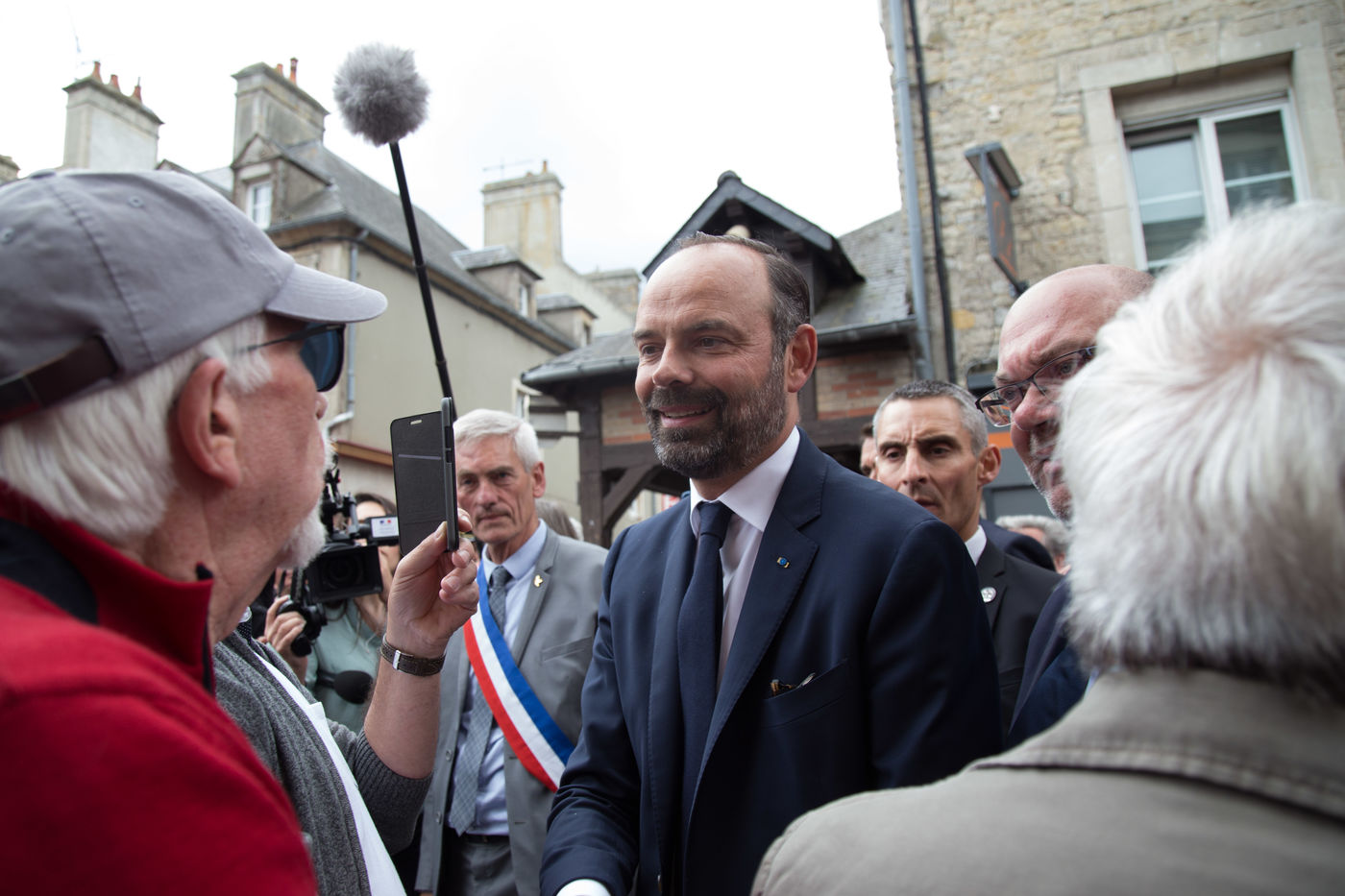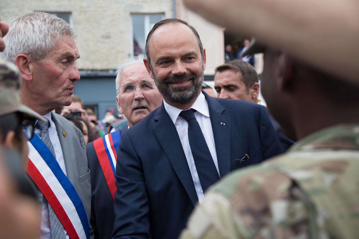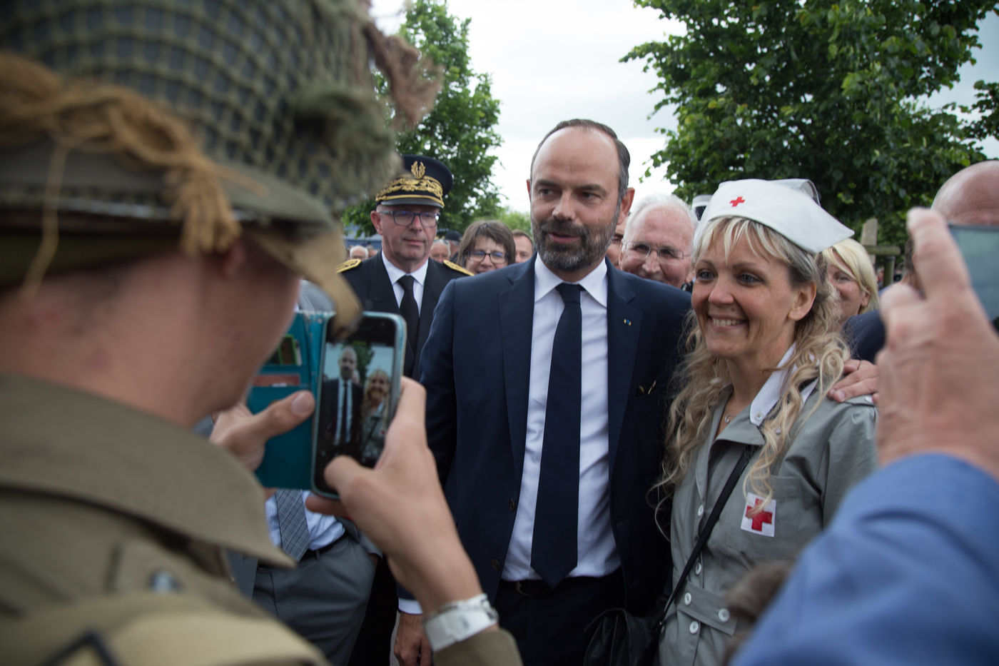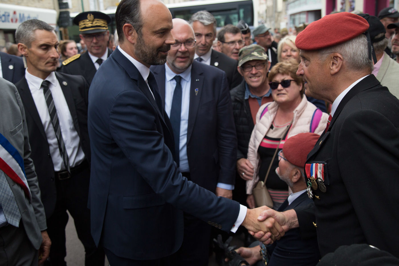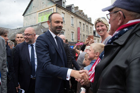 Ce 6 juin 2019, à l'occasion des commémorations des 75 ans du Débarquement en Normandie, le Premier ministre, E. Philippe, s'est rendu à Sainte-Mère-Eglise (Manche). Poignées de main, accolades, sourires ont été échangés avec les habitants, les touristes et les militaires. E. Philippe a déambulé à travers cette commune connue pour avoir été l'une des premières de France libérées le 6 juin 1944. Le Premier ministre a prêté une oreille attentive aux anecdotes racontées par son maire, Jean Quetier. Pour exemple : le symbole de Sainte-Mère-Eglise se situe précisément sur le toit de son église. Un mannequin représente le parachutiste américain John Steele, resté coincé sur le clocher de l'église, dans la nuit du 5 au 6 juin 1944.