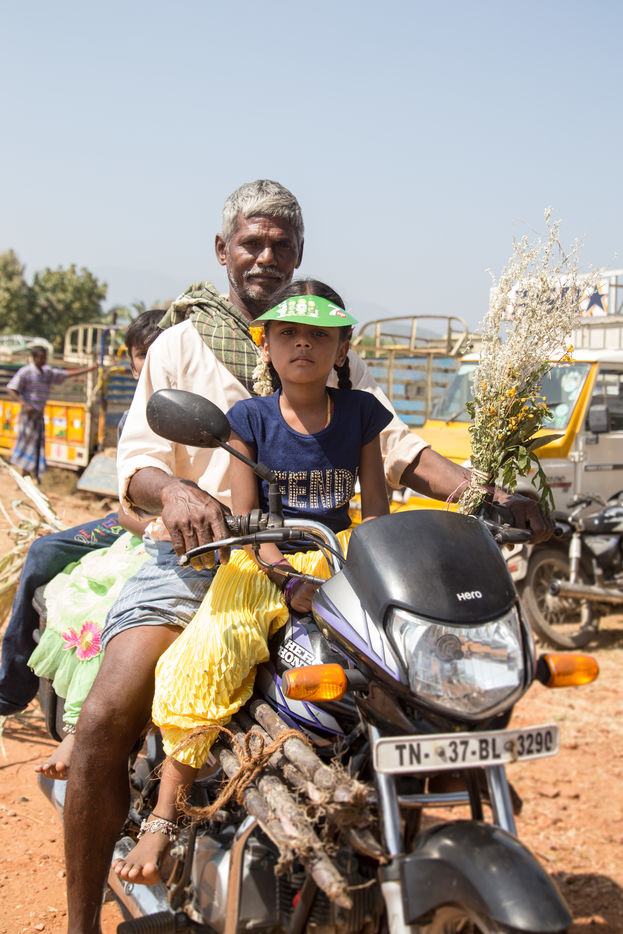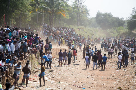 Decorated with flowers, colored paint and pompons, the bull leaves an enclosure and is release into a crowd where participants try to catch him as long as they can. The Bos Indicus species are specifically raised by people from the villages for the event and are used for animal reproduction. Jallikattu allow people to show their bavery and to win prizes such as bikes, matresses and cook tools.