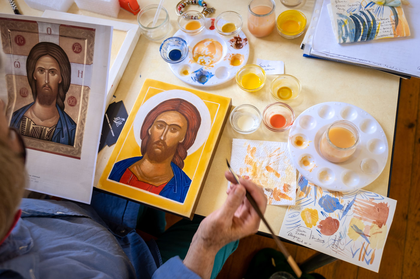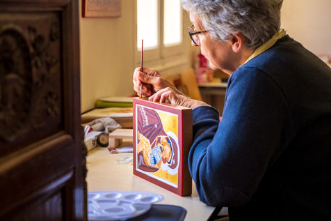 Twice a year, at the Abbey of Saint-Martin of Mondaye in the Calvados region of France, icon writing courses are offered. Beyond the learning of the technique, the course allows to experience the slowness, to discover oneself and God. For most, it is a real spiritual retreat.
