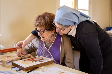 During the five days of the summer course, the brothers pray regularly with and for the retreatants, which favors the spiritual link that each person has with his own faith. In July, 16 beginners and confirmed students participated in the icon workshop. Magali Gay, supervisor at the Saint-Norbert workshop, also initiates the art of the icon throughout the year, one Saturday per month to work, pray and share.