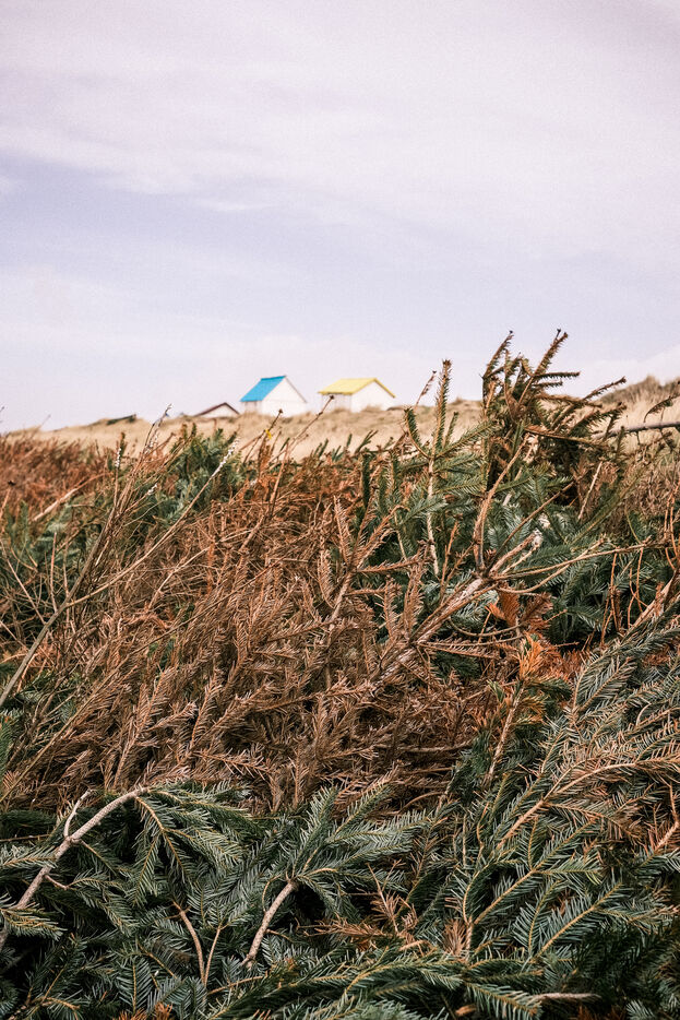 In Gouville-sur-Mer, famous for its iconic beach cabins, Christmas trees have been placed at the base of the dune for several years. Each year after the holidays, these trees are collected and then installed in March to strengthen the dune, thus contributing to the fight against rising waters.