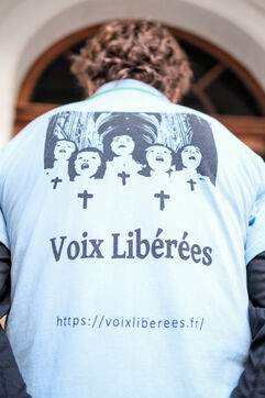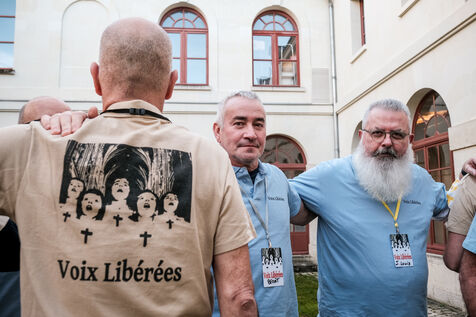 Avec Mgr Vincent Jordy, archevêque du diocèse de Tours, les victimes du Collectif des Voix libérées, Mme Marie Derain de Vaucresson, présidente de l'Inirr, l’Instance nationale indépendante de reconnaissance et de réparation, et Mme Catherine Champrenault, présidente de l’Association France Victimes 37.