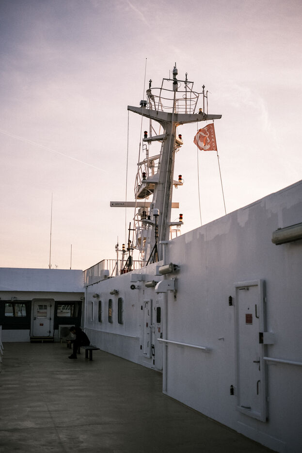 A poetic journey, departing by ferry at sunset from Marseille, an evening spent on the deck, a night in the cabin, and an arrival at the port of Propriano.