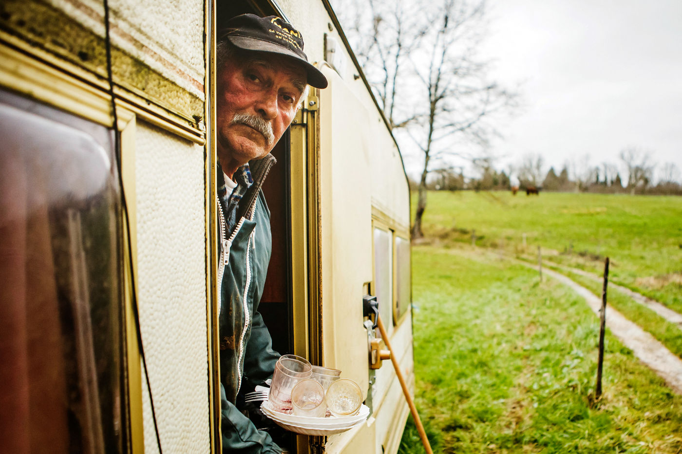 Roger Pompougnac, 77 years old, is a travelling distiller: he transforms fruit into alcoholic liquor like the alchemist turns lead into gold. Preceded by his still, he runs the countryside from October to May, passing from one hamlet to another without ever turning around. Customers everywhere are waiting for him with the same unashamed impatience. Roger, the Messiah, does not multiply breads, but litres of pear alcohol, grapes, cherries or even apple. Its rates have the advantage of being reasonable.