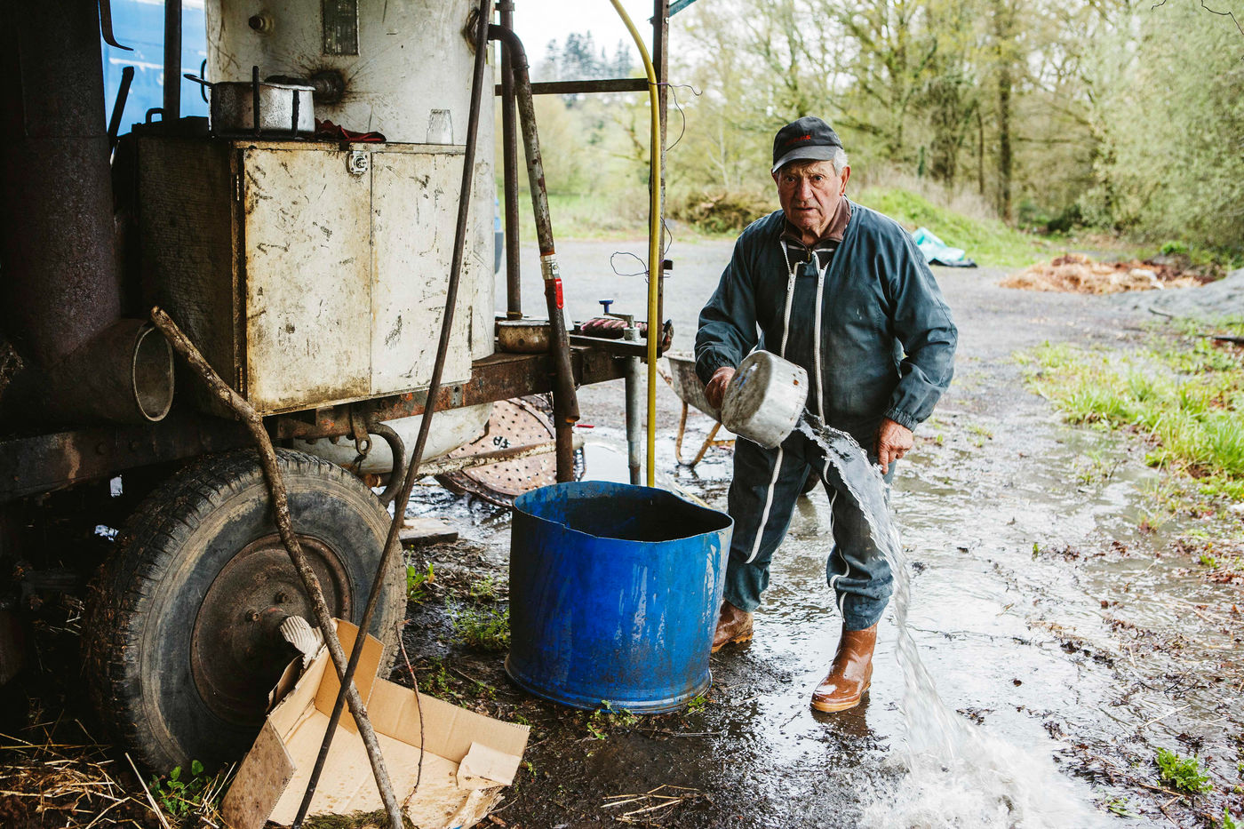 Le métier de bouilleur n'est pas de tout repos. Il faut aimer la boue, les herbes folles, les mains qui collent à cause du sucre qui dégueule de l'alambic en ébullition. Mais la chaleur des hommes, les poignées de main viriles au pied de la caravane et le respect de la parole donnée font oublier la pénibilité de l'ouvrage. Trente ans que l'alambic continue de siffler pour Roger Pompougnac.