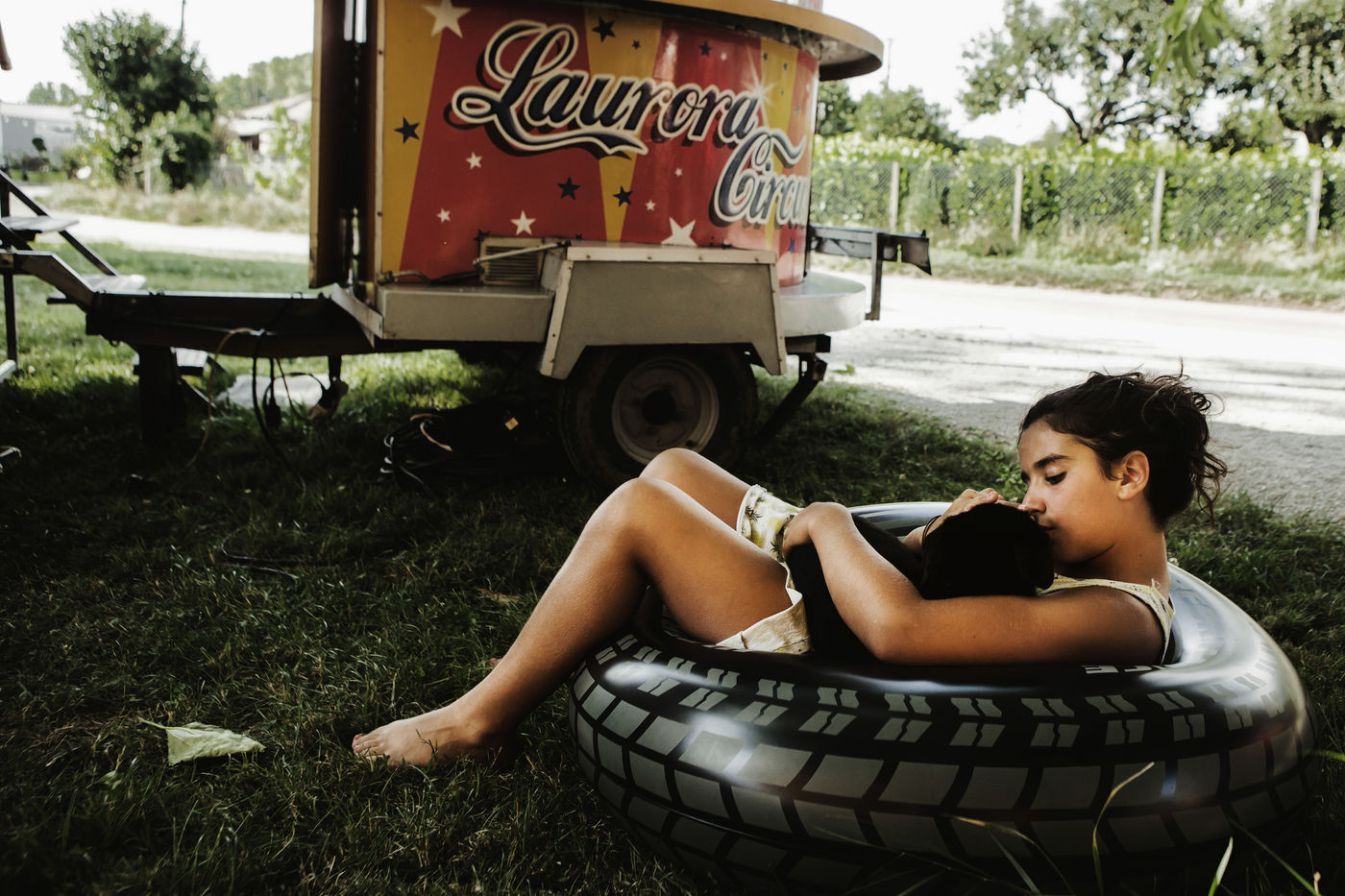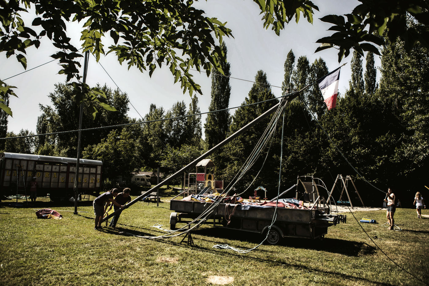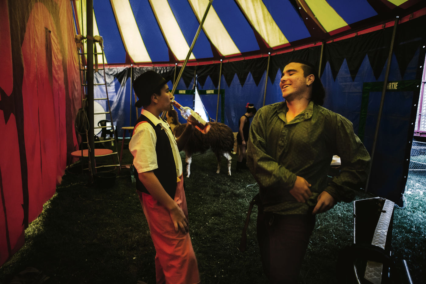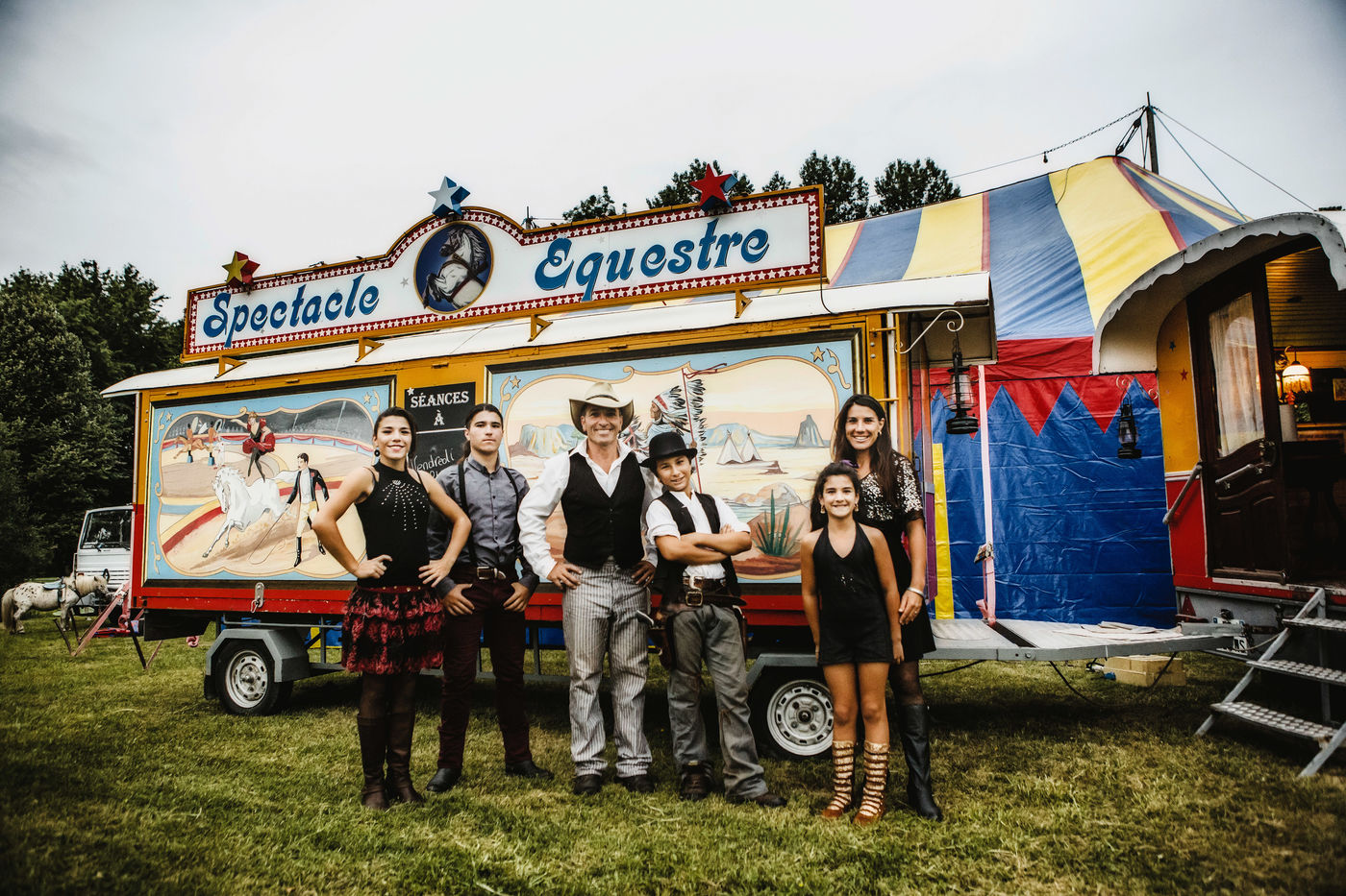 Les Laurora menaient une vie ordinaire de « gadjos » à Paris quand Jean-Marc, cascadeur de premier plan à Disneyland, a suggéré à sa femme de monter leur propre compagnie de cirque avec un chapiteau de poche et trois roulottes chinées sur leboncoin. Tandis que le couple alterne numéros de voltige équestre et performances burlesques, Aleandro, 8 ans, apparaît de temps à autre sur la piste pour faire le clown tandis que sa jeune soeur Enola se perfectionne au hula-hoop en coulisses. « Giovan et Nina nous ont rejoints un peu plus tard. Nina était encore dans son berceau quand on a lancé le cirque », se souvient Nadège.