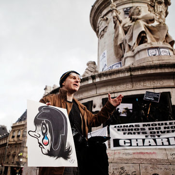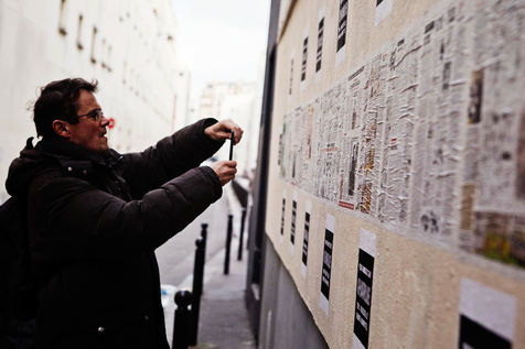 Tribute to the deaths of Charlie Hebdo in the streets near Nicolas Appert Street, the headquarters of the editorial office where the attack took place as well as Place de la Republique.