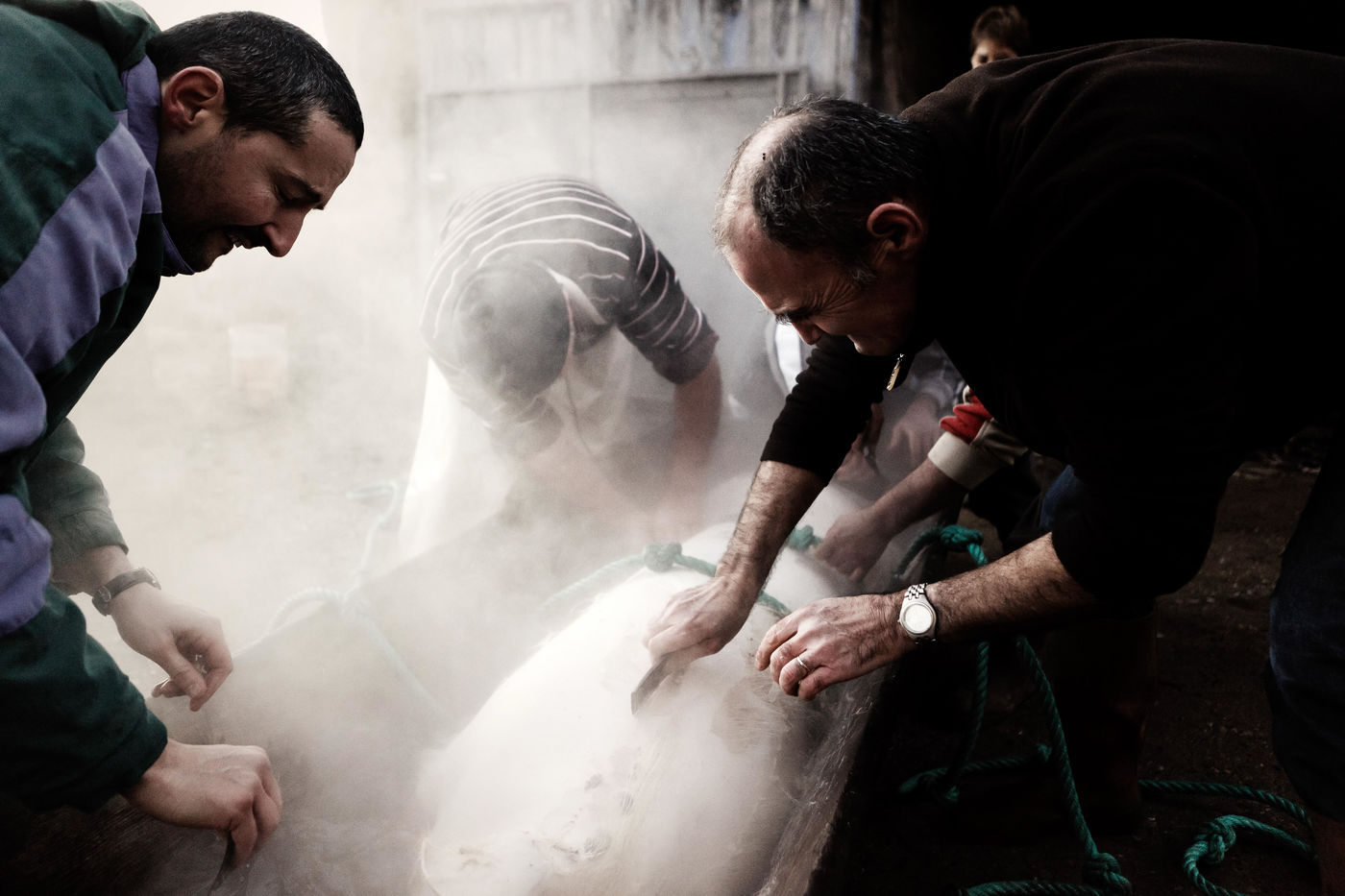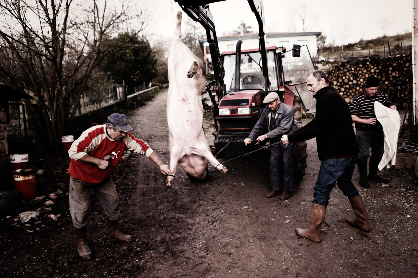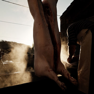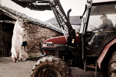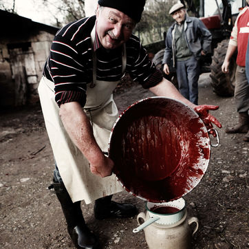 Leo eleve 2 cochons a l annee et tous les 2 ans, il fait venir le tueur ainsi que toute la famille pour tuer le cochon et pouvoir faire des saucisses, des boudins, des grattons, tout ceci dans la bonne humeur!