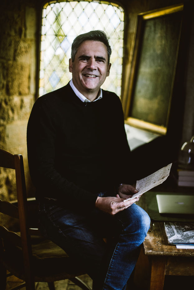 L'ecrivain Jacques Ravenne dans son Chateau a Costeraste en Dordogne.