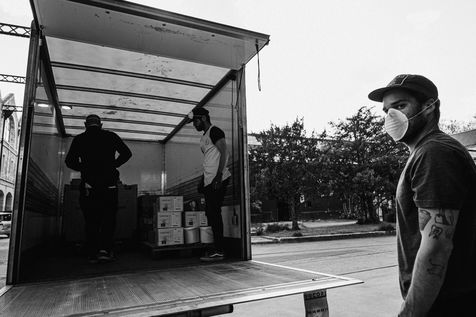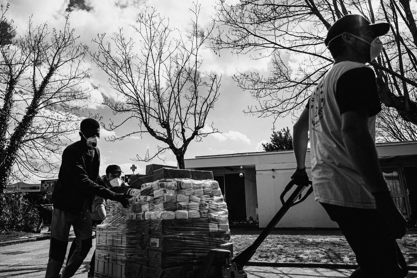 Les associations d'aide aux migrants distribuent depuis plusieurs jours en urgence de la nourriture et des produits de première nécessité dans les squats de Bordeaux et ses alentours où de nombreuses personnes sont confinées depuis l'apparition du Covid-19. Une logistique impressionnante a été mise en place avec la participation de nombreux bénévoles. J'ai ainsi pu suivre une équipe de l'association Bienvenue dans sa distribution de denrées en direction de la Zone Libre, un lieu qui héberge 80 familles.