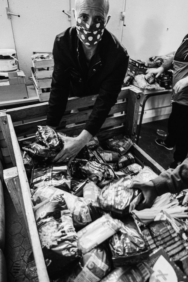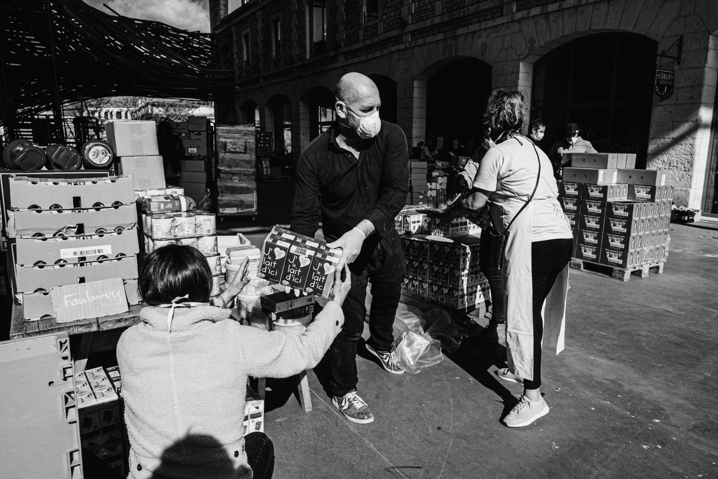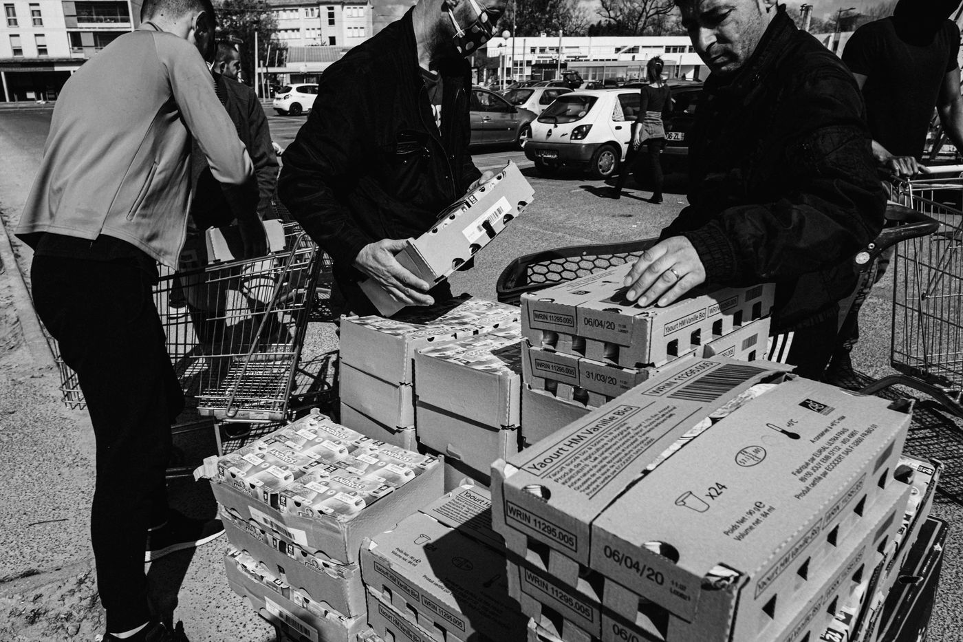 Migrant aid associations have been distributing food and basic necessities for several days in emergency in the squats of Bordeaux and its surroundings where many people have been confined since the appearance of Covid-19. Impressive logistics have been put in place with the participation of many volunteers. I was thus able to follow a team of the association Bienvenue in its distribution of food towards the Zone Libre, a place which shelters 80 families.