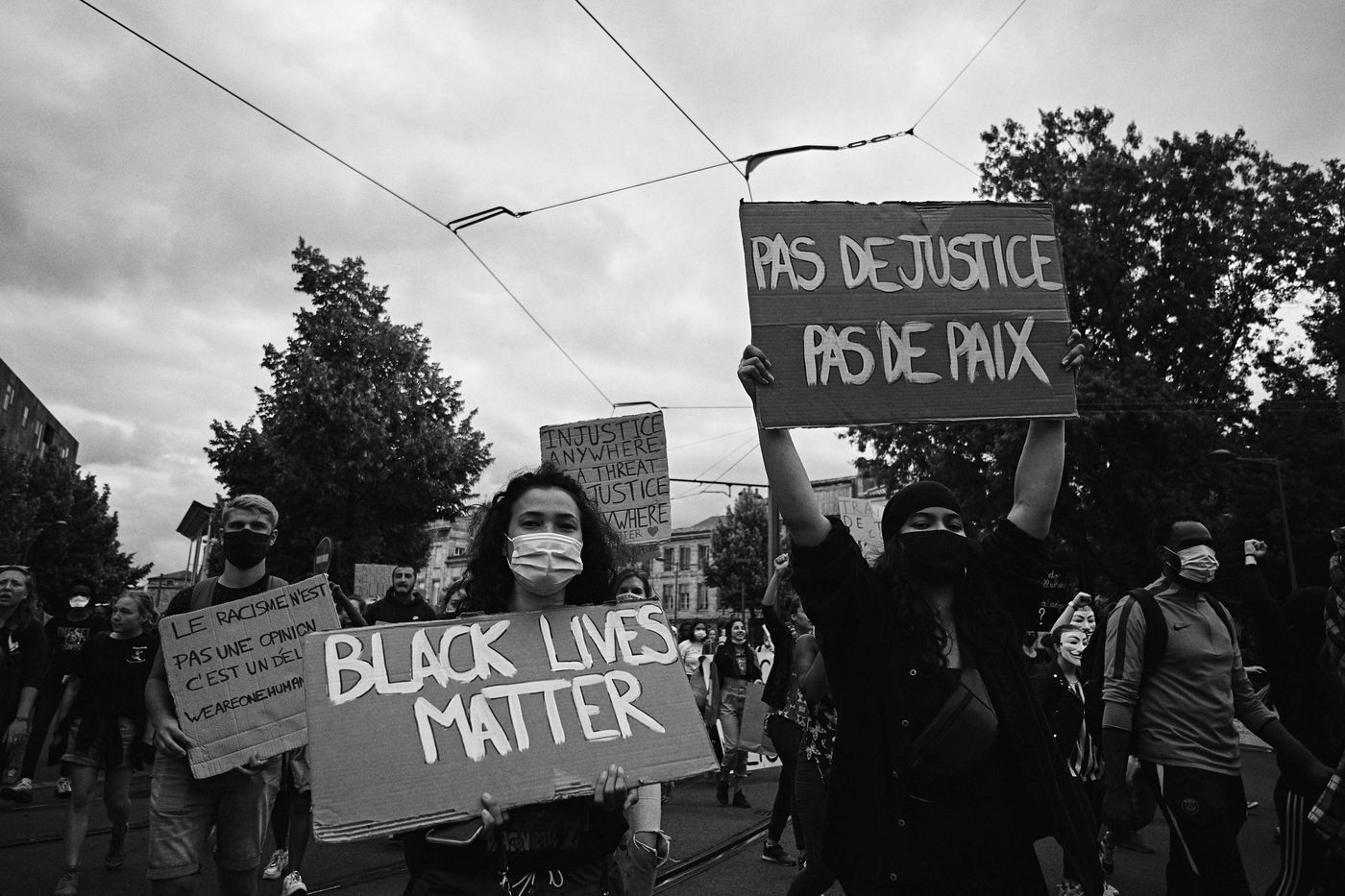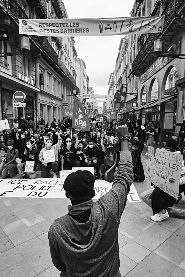 In Bordeaux, demonstrations were held to pay tribute to the victims of police violence and to march against racism on Saturday 6 June 2020. After a stop in front of the US embassy, they crossed the city to go to the central police station.