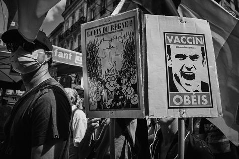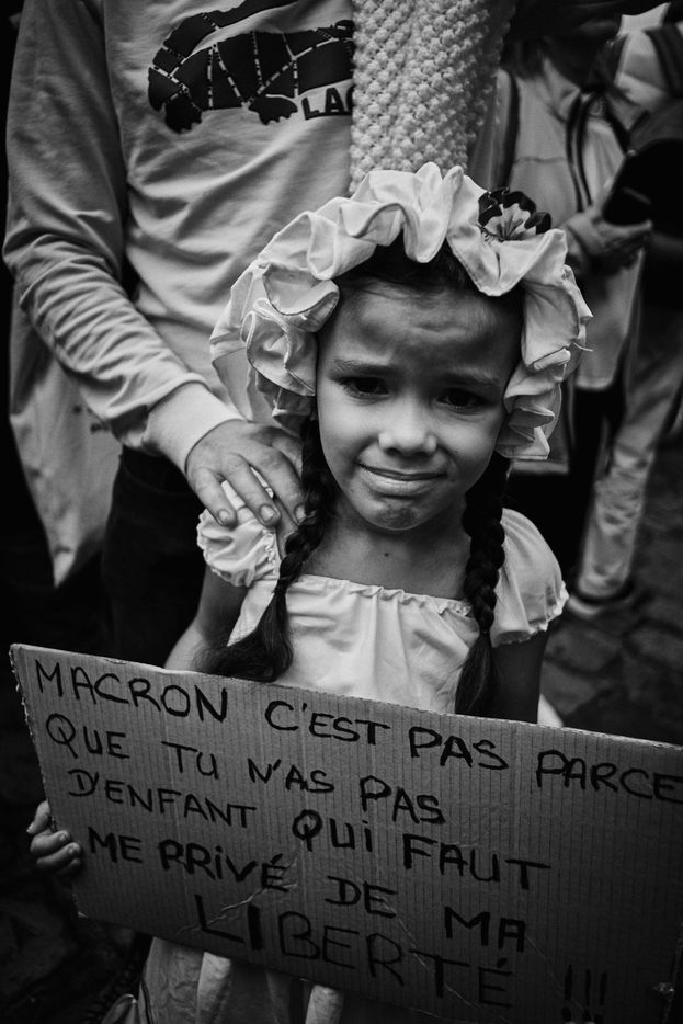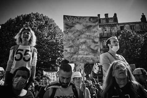 For 4 Saturdays now, a heteroclite cortege of demonstrators against the health pass has been marching towards the city centre of Bordeaux. Few yellow stars, but the slogans "liberté" and "Macron ton pass on n'en veut pas" are chanted by an impressive number of people, recalling the beginning of the Yellow Vests demonstrations.