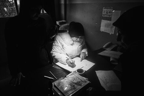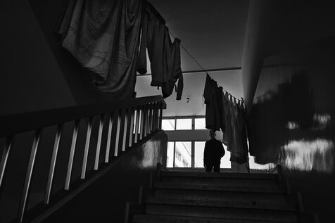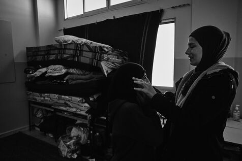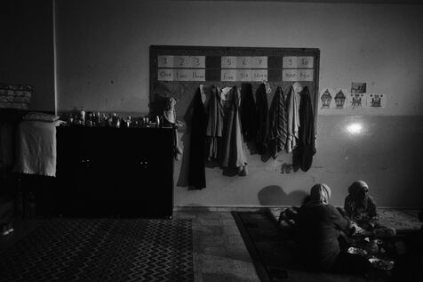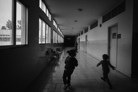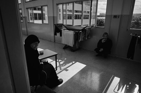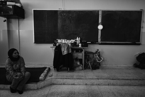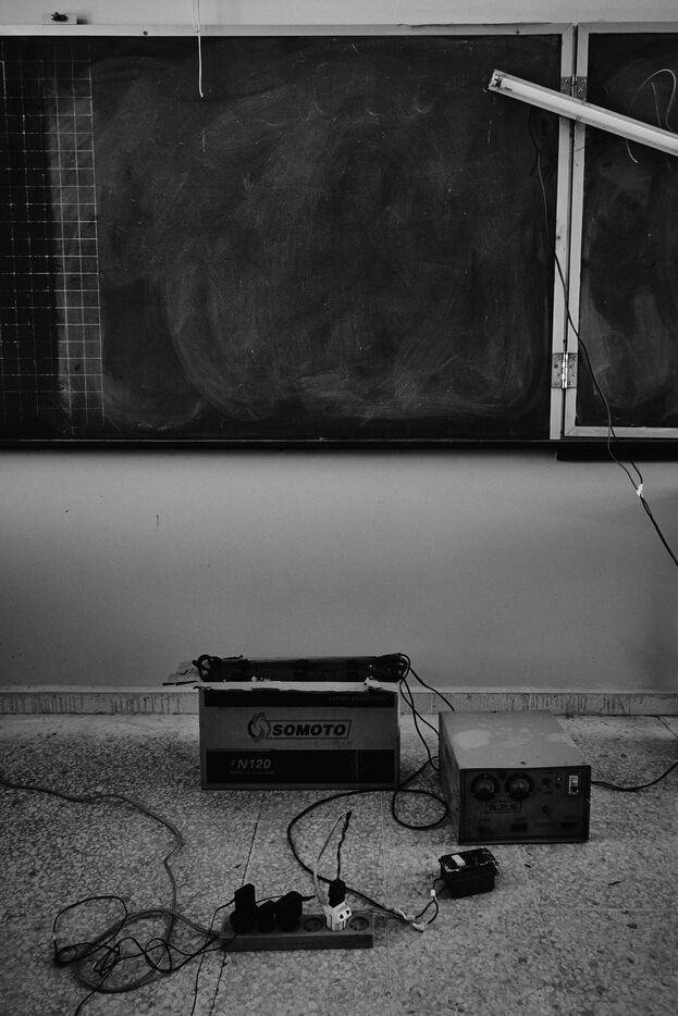 To get to the Tyre Technical School, we have to walk past the remains of an armoured vehicle dating from previous wars. One of the staff takes me into the classrooms on the upper floors. These are used as living quarters for the many families who fled their villages in southern Lebanon after the bombings by the State of Israel. Some families have been here for over four months now. Life there is more bearable, though still extremely precarious, thanks to the donations of many local citizens and international aid. The lives of the school's residents are punctuated by frequent power cuts. Here we find a gas stove for cooking with the neighbors, while in the adjacent room, several chichas sit in front of the large blackboard in the classroom. Despite the situation, the exiles try to maintain a semblance of social life, while the children race their scooters down the school's long corridors, their laughter punctuating the daily life of the inhabitants. In the neighboring Tyre Second School, the municipality no longer provides the necessary electricity supply, and the building is plunged into darkness all day long. Using a flashlight from a colleague's cell phone, the headmistress manages the school's administration and the many lessons given to the refugee children. The school still offers schooling for the children of families who have fled the south, in order to prevent them from dropping out and worsening their situation. A worn-out man also arrived 4 months ago after his house was bombed a few kilometers from the border. Like his room-mate, very old and seriously ill, he has no illusions about returning home. Capacities for obtaining medication are limited, and many are afraid of ending their days here. The sudden downgrading of these many border residents, who have lost everything in the space of a few hours, exacerbates tensions with a Lebanese state incapable of managing the crisis, and the looming shadow of a war that has yet to speak its name does nothing to ease the situation.