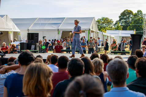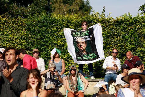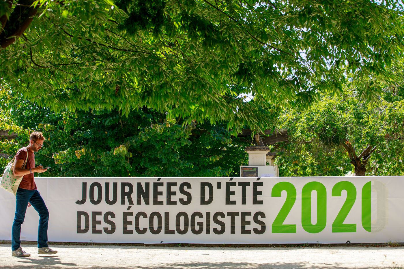Rassemblement des ecologistes lors des journees d ete des ecologistes dans le parc de Blossac a Poitiers le 20 aout 2021.