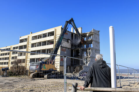 Demolition work begins on the Le Signal building, now a symbol of coastal erosion.
