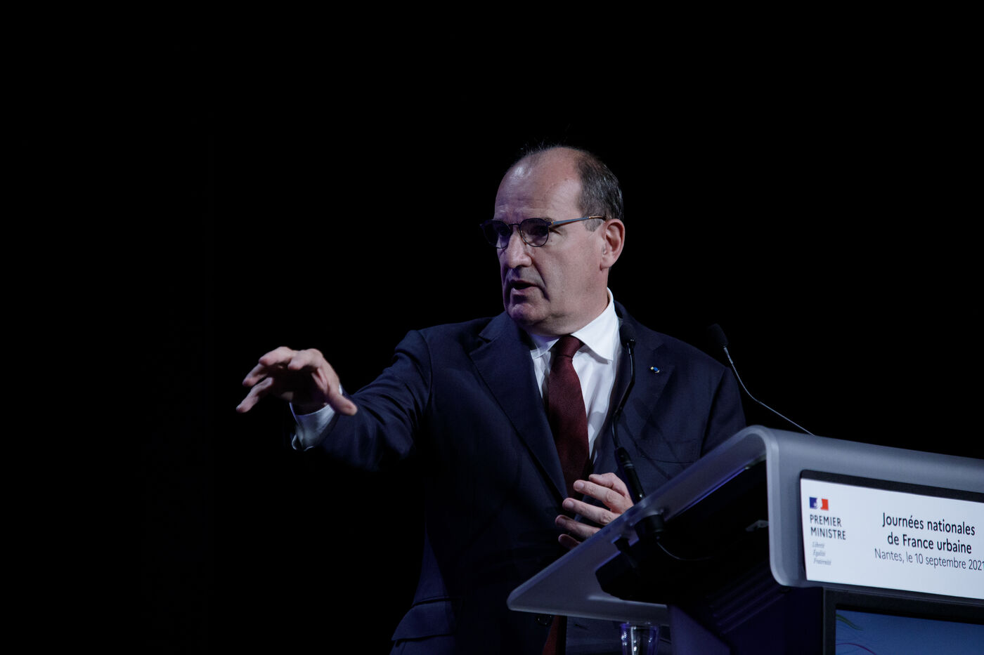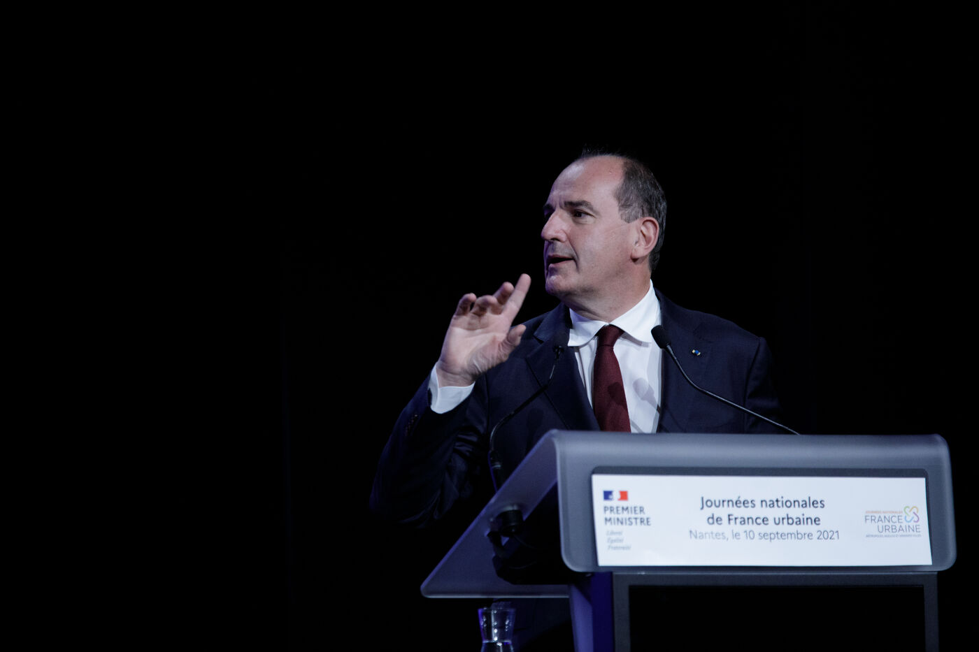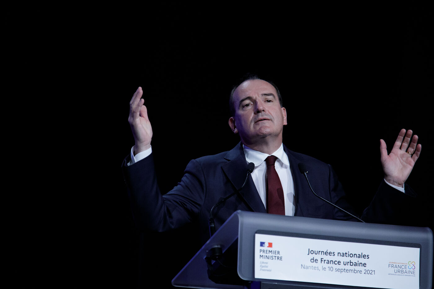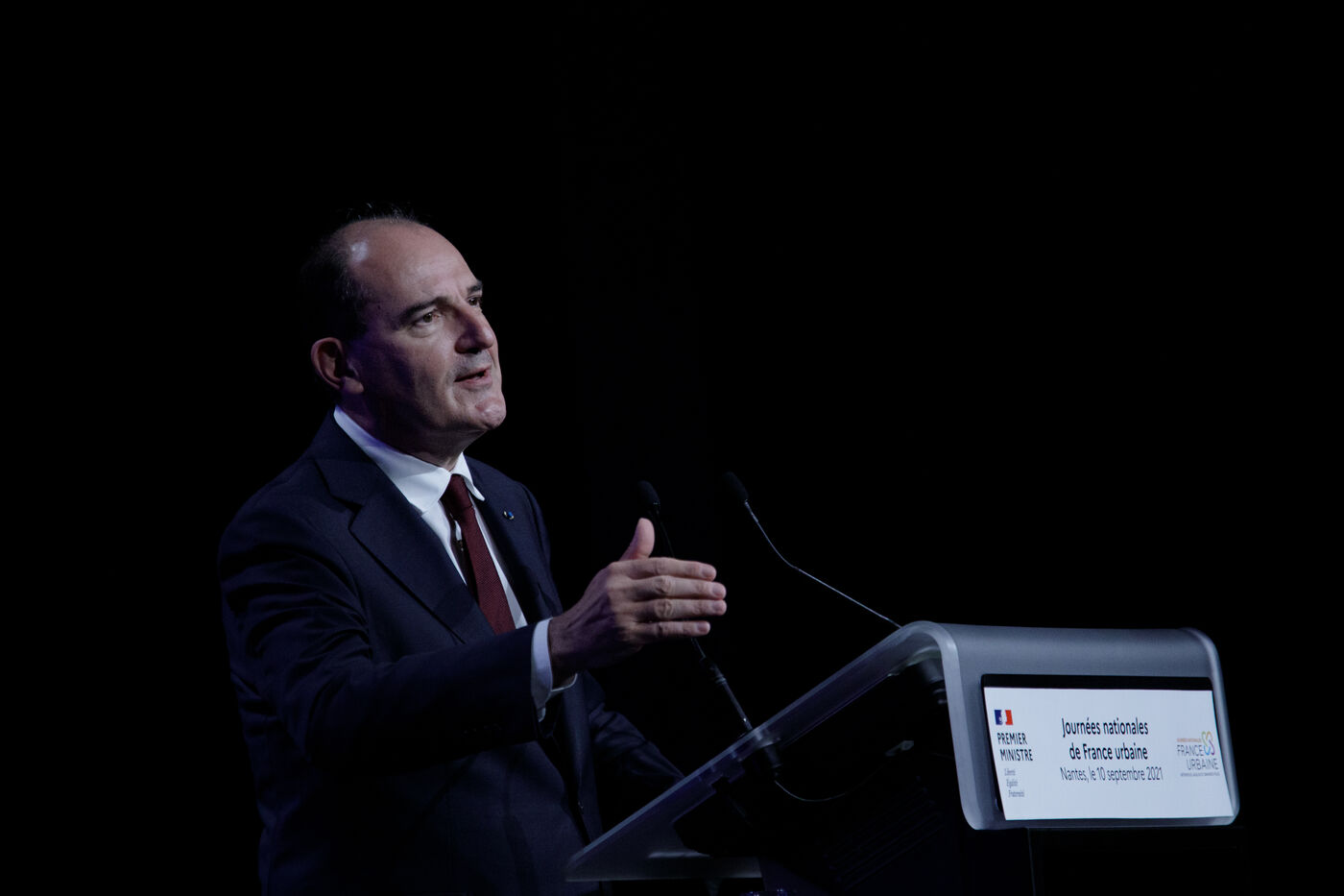 Jean Castex, Prime Minister, delivers a speech at the Journées nationales de l'association France Urbaine, Nantes, September 10, 2021.