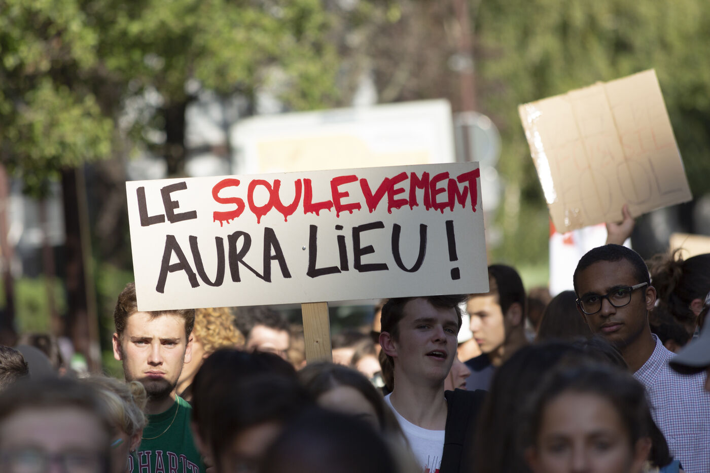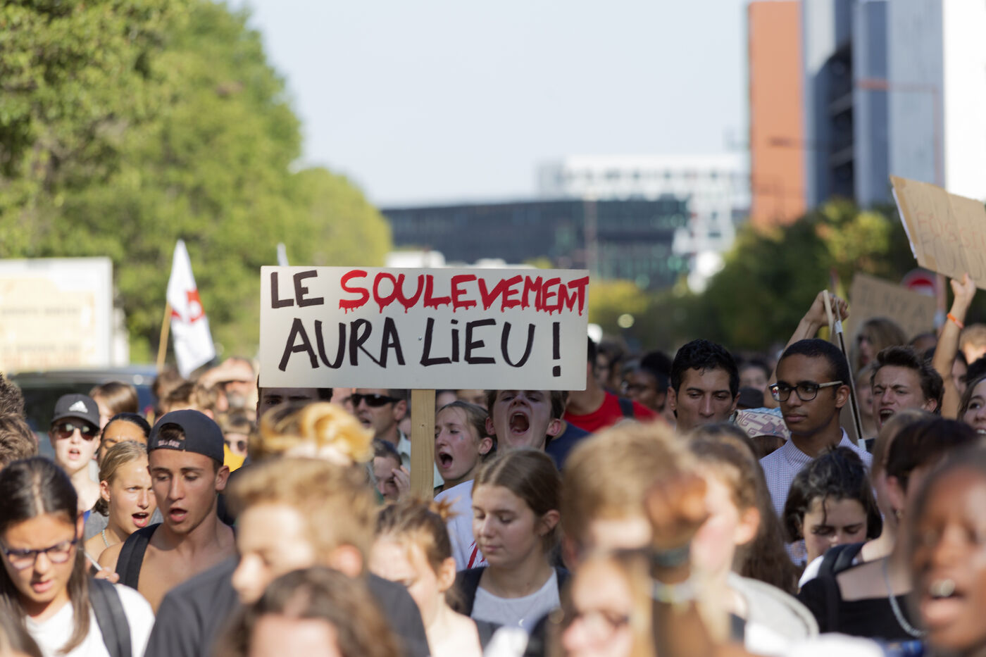 3eme greve des jeunes pour le futur. Les jeunes descendent dans la rue lors d'une greve globale en faveur du climat et contre le rechauffement climatique. Ils denoncent l inaction des politiques a la veille d un sommet exceptionnel de l ONU sur le climat.