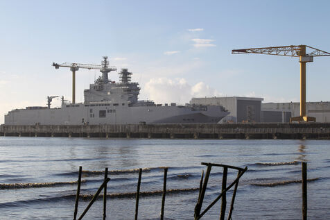 The Vladivostok warship, a Mistral-class helicopter carrier ordered by Russia, is pictured at the STX France shipyard in Saint-Nazaire, western France.