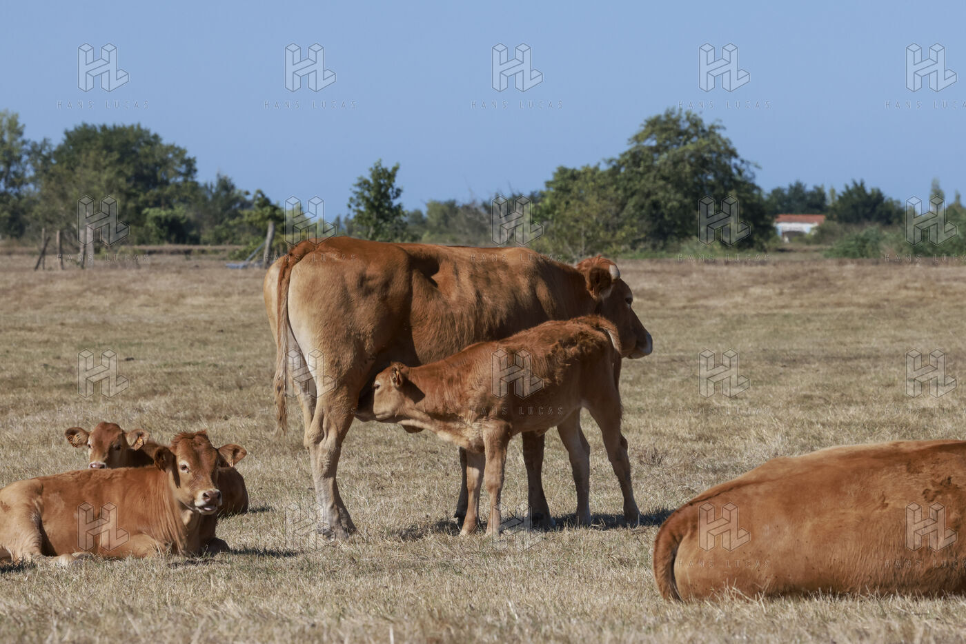 Cows and calves grazing in the middle of a drought in Loire-Atlantique on August 6, 2022.