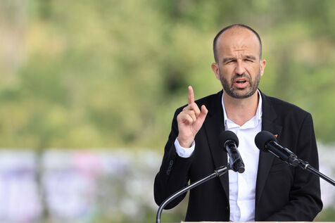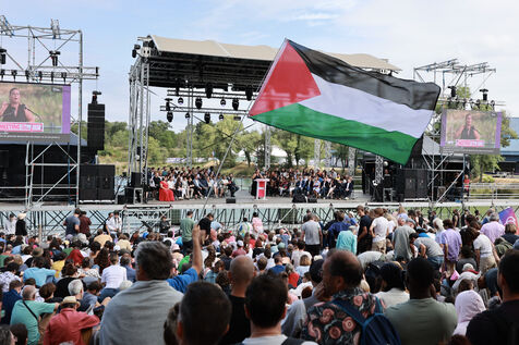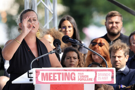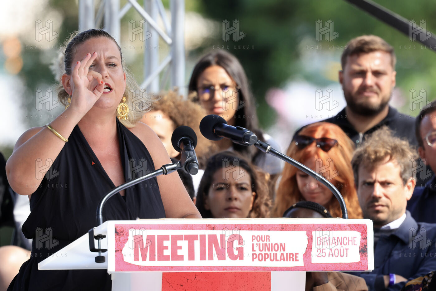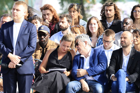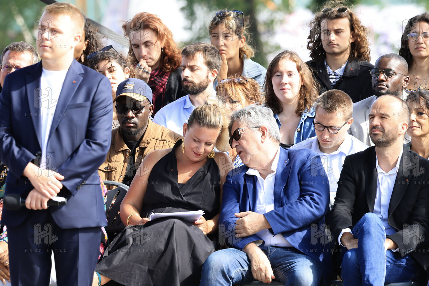 Closing meeting with Jean Luc Melenchon, Mathilde Panot and Manuel Bompard at the AMFIS 2024 in Chateauneuf sur Isere on August 25, 2024.