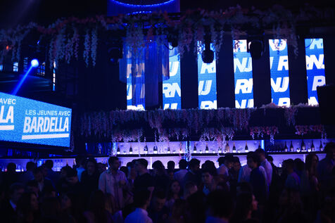 Jordan Bardella, President of the Rassemblement National, at the RNJ party at the High Club in Nice on October 5, 2024.