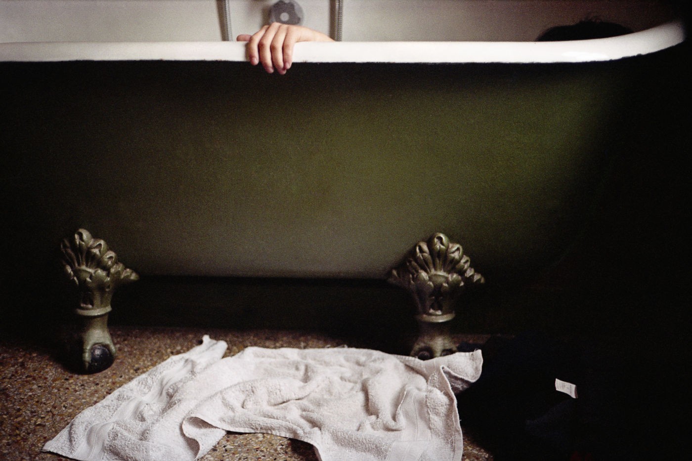 J’ai travaillé à partir du texte de Madeline Roth pour un projet d’édition chez Où sont les enfants. Le principe de la collection étant de faire un « roman photographique », dans un dialogue permanent du texte et des images. Je lis et relis ce texte, et déjà, des images apparaissent. Des paysages, beaucoup, pour que l’image ne vienne pas illustrer les mots, mais les gonfler, leur donner un espace de résonance. Je tente de photographier les images mentales qui font surface, sans plus revenir vers le texte. Et je me laisse emporter par ces fragments de paysages ou de corps à fleur de peau, ces lumières teintées par la nuit. Dès le départ, une envie de ne pas incarner les personnages, qu’ils restent dans l’ombre, à l’abri du texte. Elle a choisi de ne pas trop en dire, je choisis de ne pas montrer. Des images comme une amorce seulement, libres, fugaces ; des images en fuite. « Elle a dû courir les pieds nus dans les talus s’arracher la peau aux rochers pour finir transie de froid derrière la chapelle, à prier pour que la mort l’emmène. Et puis elle est rentrée. Parce que pendant toutes ces années, Laura s’est accrochée. Quelque chose qui est peut-être un peu d’amour un peu d’espoir l’a tenue en vie. Quelque chose qui s’est essoufflé pendant dix ans et qui a fini par s’écrouler, parce qu’il n’y avait plus rien. » Madeline Roth Septième
