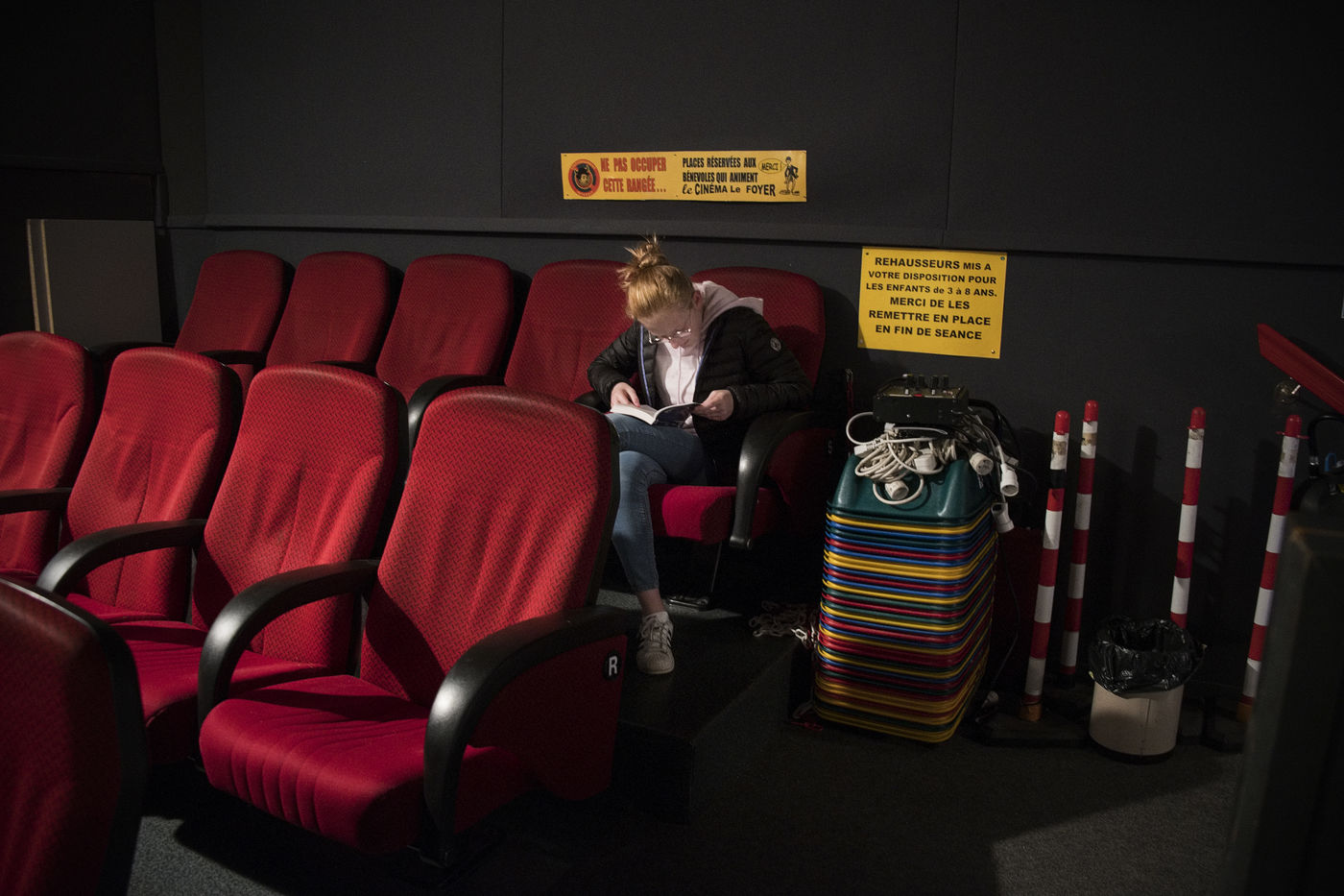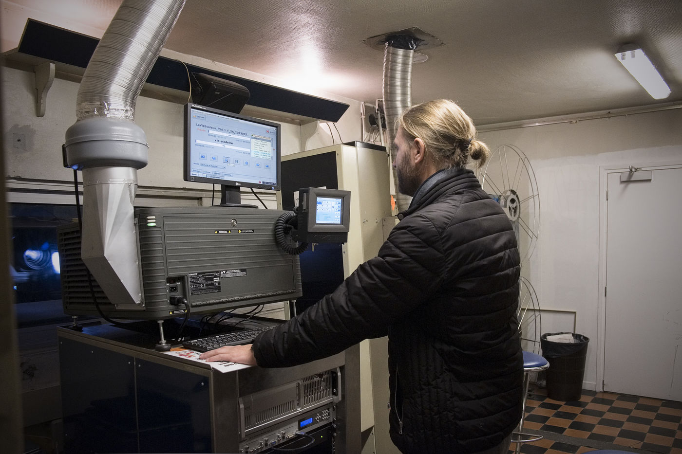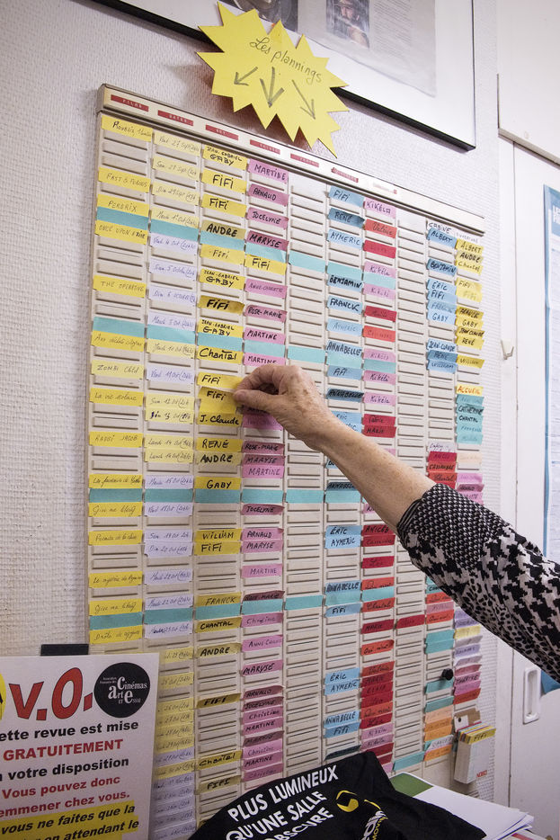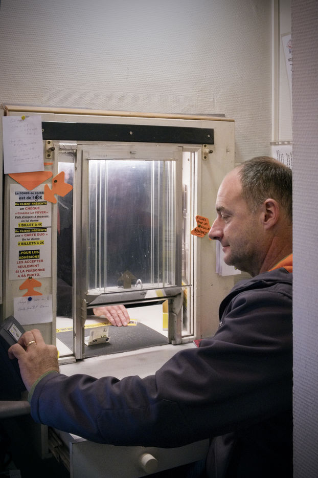 Le cinéma le Foyer à Bousbecque est entièrement tenu par des bénévoles. Cinéma d'art et essai et également salle de théatre. Philippe et Chantal Caron sont les deux bénévols qui l'ouvrent presque tous les jours, se chargent de la programmation etc. Ce samedi soir là, le film "La vie scolaire est projeté". Philippe et Chantal accueillent les spectateurs, Arnaud est à la caisse, Eric projette le film, sa fille Léa vend des friandises avec Valérie.