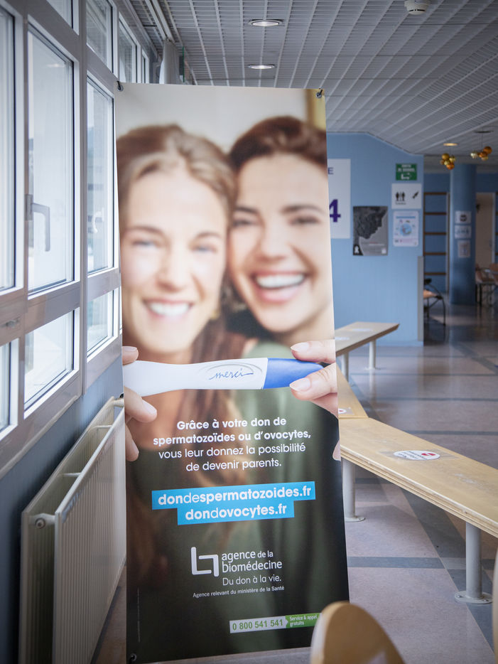 Le 8 décembre 2021 au CHU de Lille - à l'Hopital Jeanne de Flandres- . C'est un grand jour puisque le premier consacré à l'accueil de couples de femmes ou femmes seules auxquelles on va proposer une aide à la procréation médicalement assistée. A la suite du décret de la loi sur la bioéthique paru le 29 septembre 2021, le service de PMA de Lille a décidé d'ouvrir de nouveaux créneaux pour ces femmes. Le service est débordé par les demandes, 490 demandes au CECOS (banque de sperme) au 5 décembre, c'est le double de ce qui était attendu. A l'heure actuelle, le délai d'attente pour obtenir un don de sperme est en moyenne de 15 mois.Ces couples ou femmes seules sont inscrits sur la même file d'attente que les couples hétérosexuels. Les délais pour les FIV sont moins longs que pour les inséminations car elles nécessitent moins de pailles de sperme.