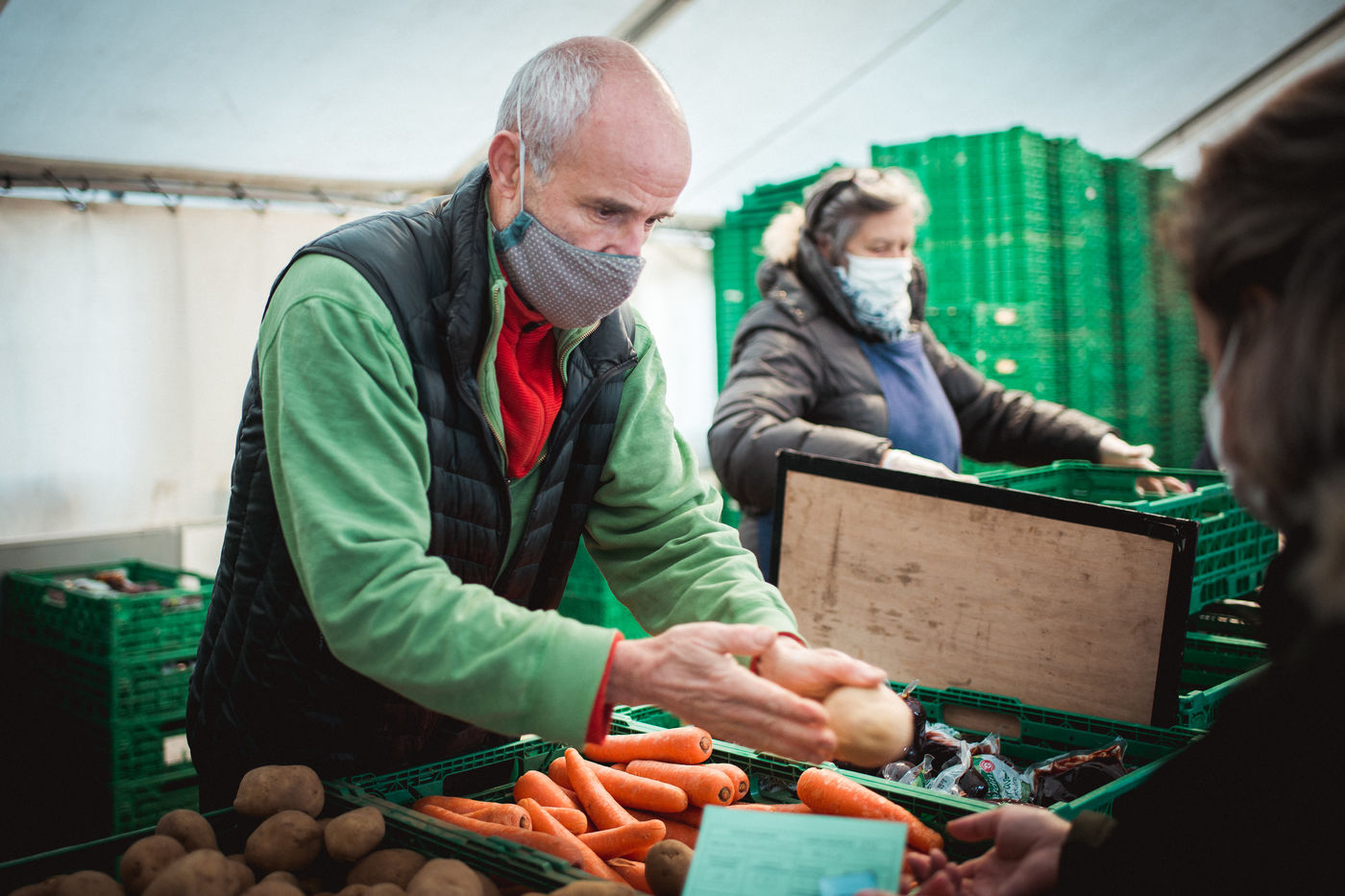 Their names are Danielle, Patrick, Jacques or Jocelyne and they are all at least 60 years old. Most of them have been volunteers for many years, but their vulnerability to the pandemic has not diminished their commitment. Determined to continue the food distributions, they mobilize every day in good spirits to continue to give meaning to the word "solidarity".