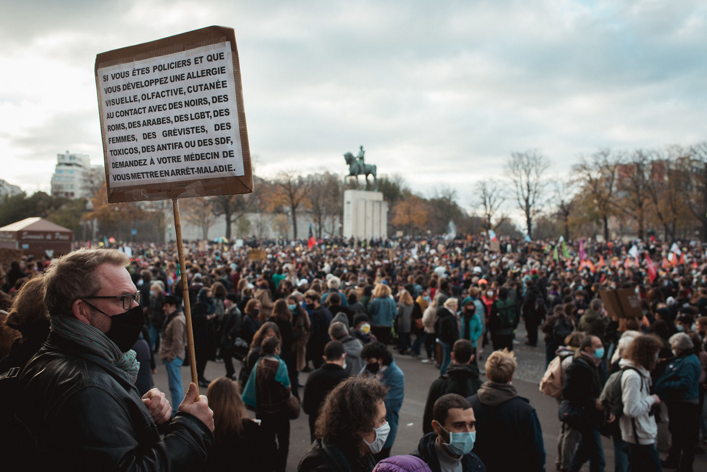 Pour protester contre la proposition de loi « sécurité globale » menaçant la liberté de la presse, des centaines de manifestants se sont donné rendez-vous ce samedi 21 novembre sur la place du Trocadéro à Paris.