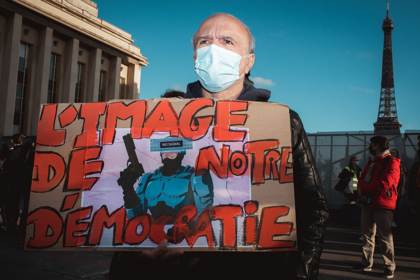 To protest against the proposed law "global security" threatening the press liberty?, hundreds of demonstrators met this Saturday, November 21 on the Place du Trocadéro in Paris.