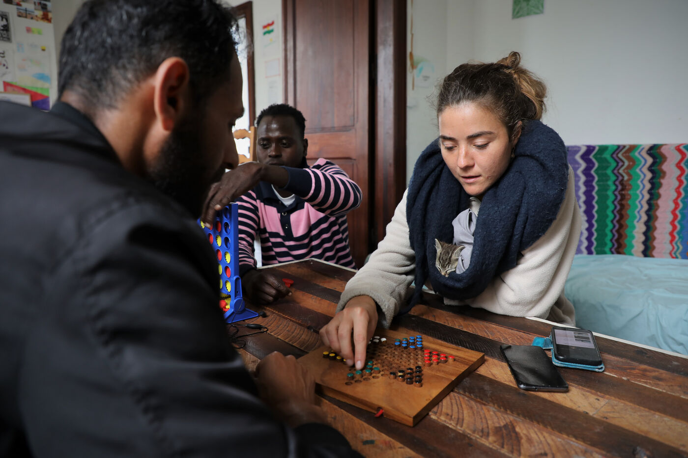 A place of exchange and sharing, volunteers and exiled people live together and each person contributing to the house.