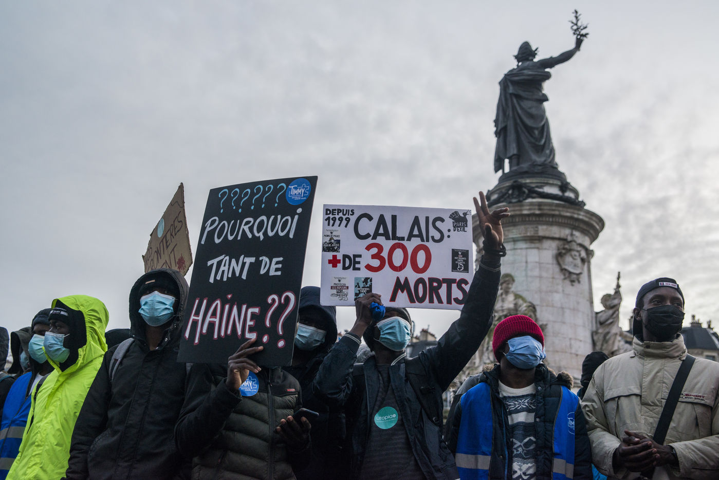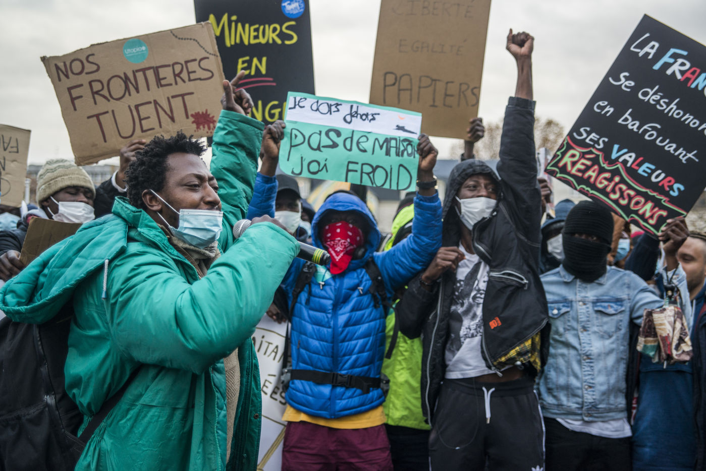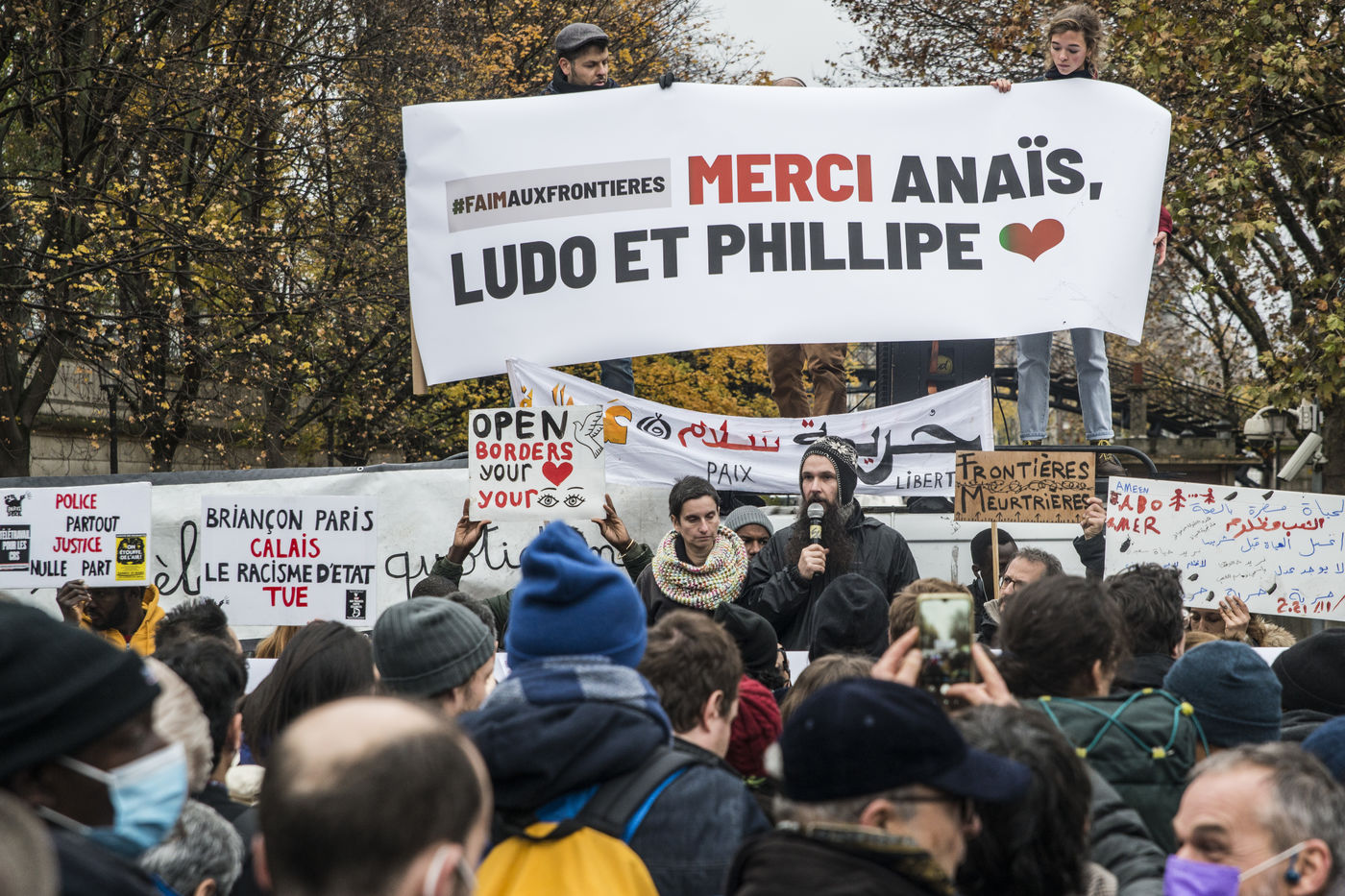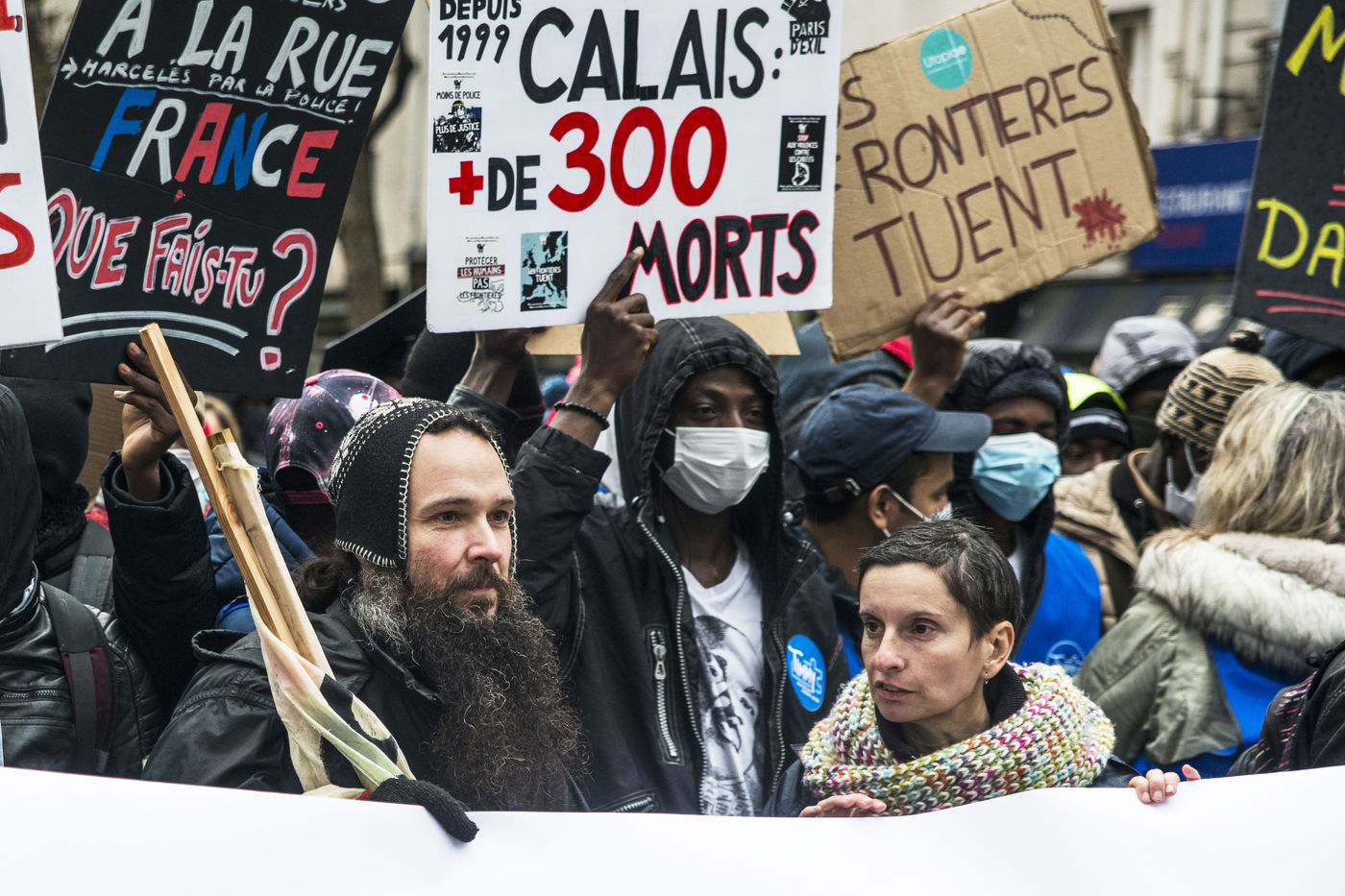 The calasian collective HungerAtBorders (FaimAuxFrontieres) organised a protest this sunday 21st of November in Paris from Place de La Bataille de Stalingrad to Place de la République after the end of a hungerstrike by activists. Hundreds of people participated in the demonstration against violence towards people in exile.