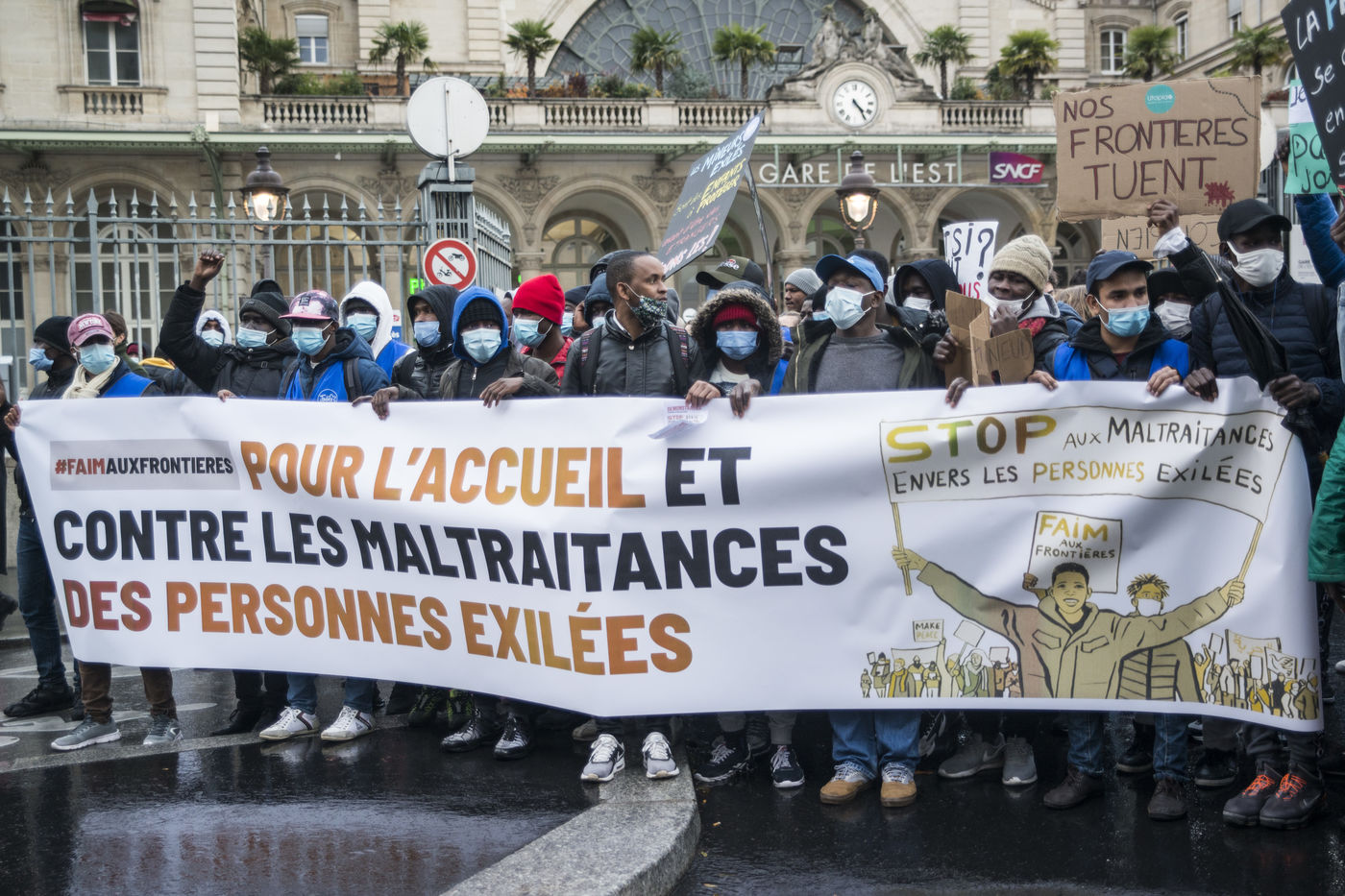 Paris - Manifestation "FaimAuxFrontieres" contre les maltraitances envers les personnes exilées en France
