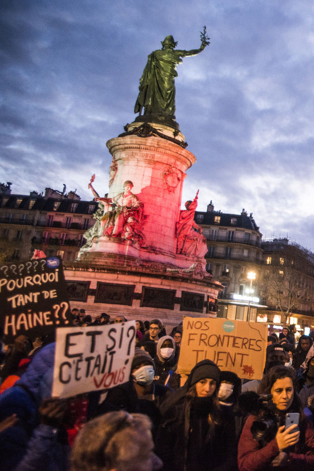 Paris - Demonstration against violence towards exiled people in France