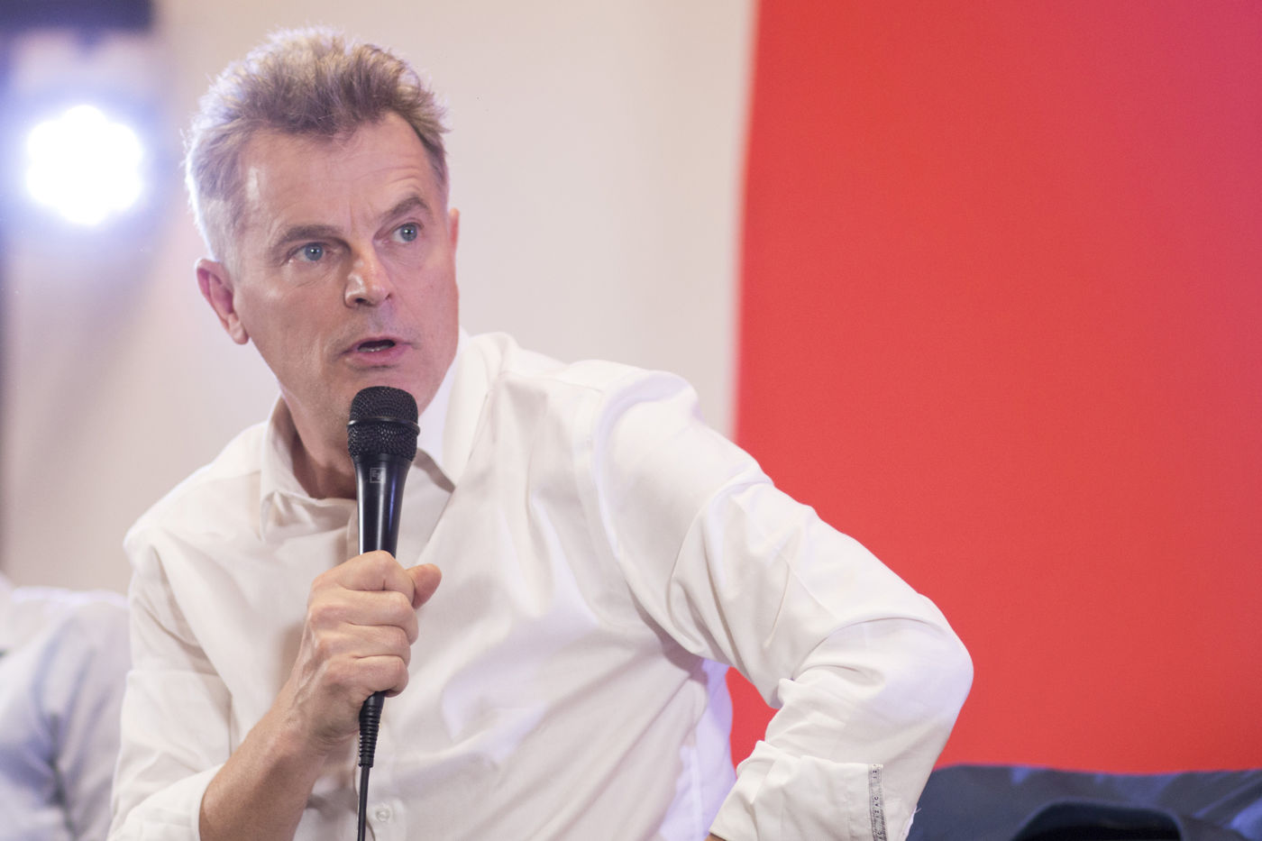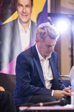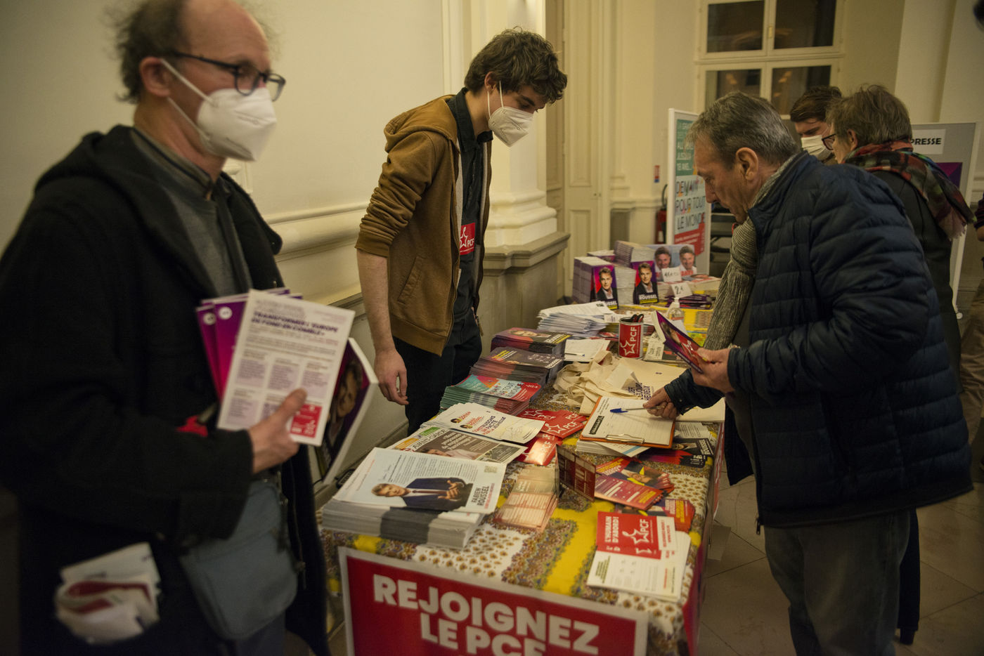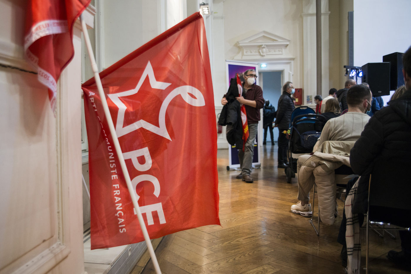French Communist Parti (PCF) candidate to the 2022 presidential election Fabien Roussel holds a meeting in Strasbourg in a room of the L Aubette building near place Kleber.