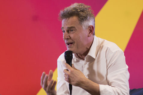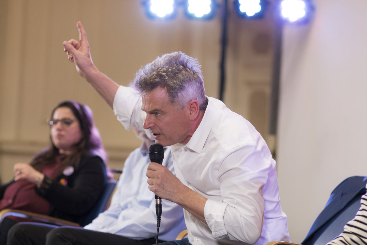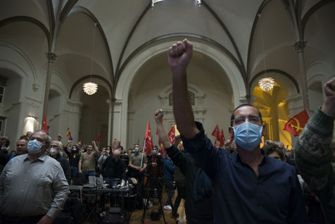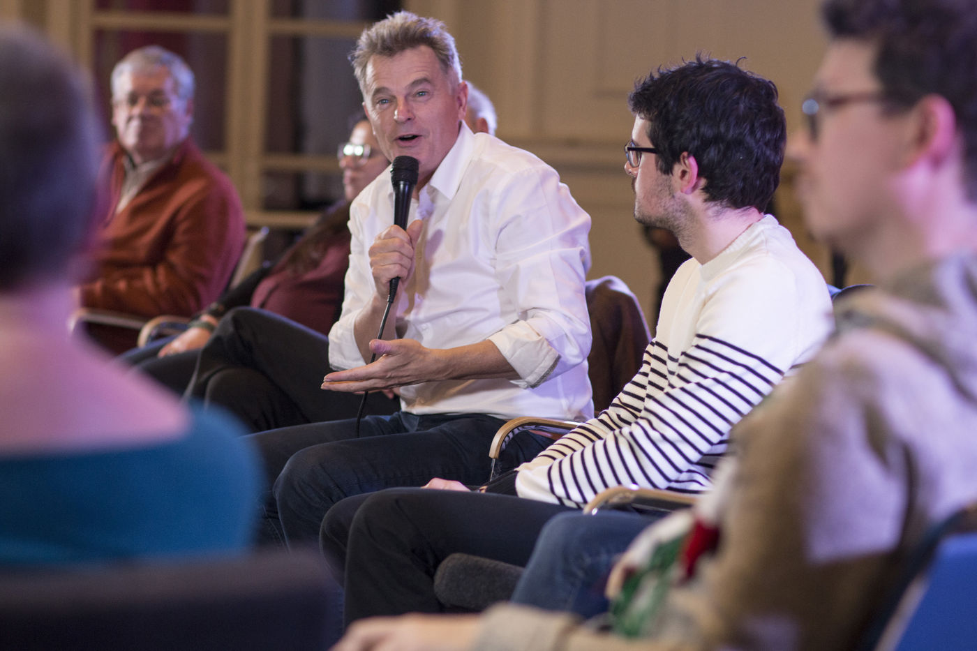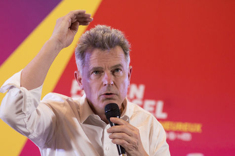 French Communist Parti (PCF) candidate to the 2022 presidential election Fabien Roussel holds a meeting in Strasbourg in a room of the L Aubette building near place Kleber.