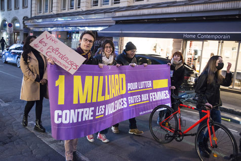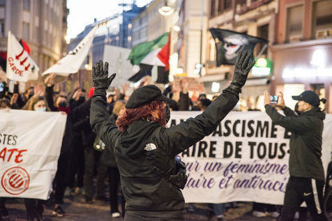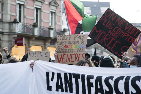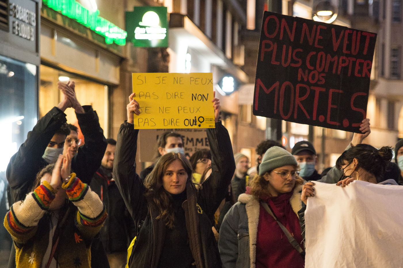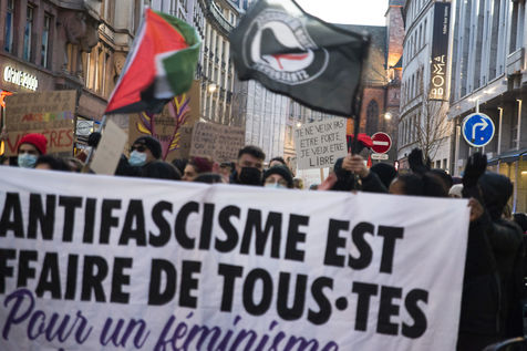 France, Strasbourg, 2022-03-08. A feminist march and gathering takes place in Strasbourg for the 8th March, the International Women s Rights Day, from the train station to the place Broglie. Photography by Martin Lelievre / APJ / Hans Lucas.